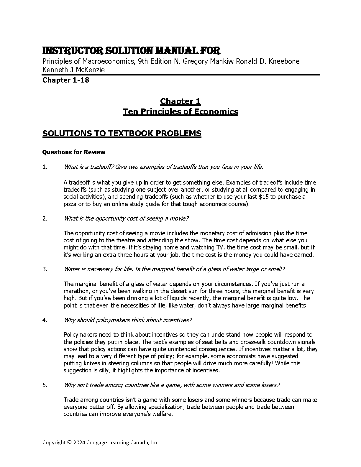 Instructor Solution Manual for Principles of Macroeconomics, 9th Edition by N. Gregory Mankiw, Ronald D. Kneebone, Kenneth J McKenzie
