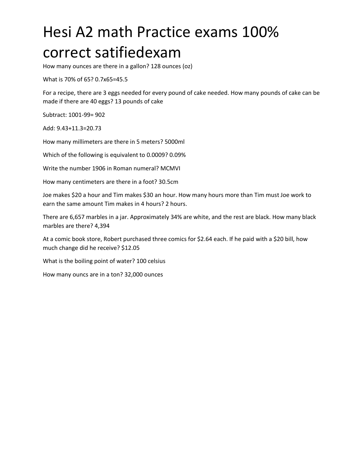 Hesi A2 math Practice exams 100% correct CERTIFIED exam 2023/2024. DOWNLOAD on www.hackedexams.com INSTANTLY.