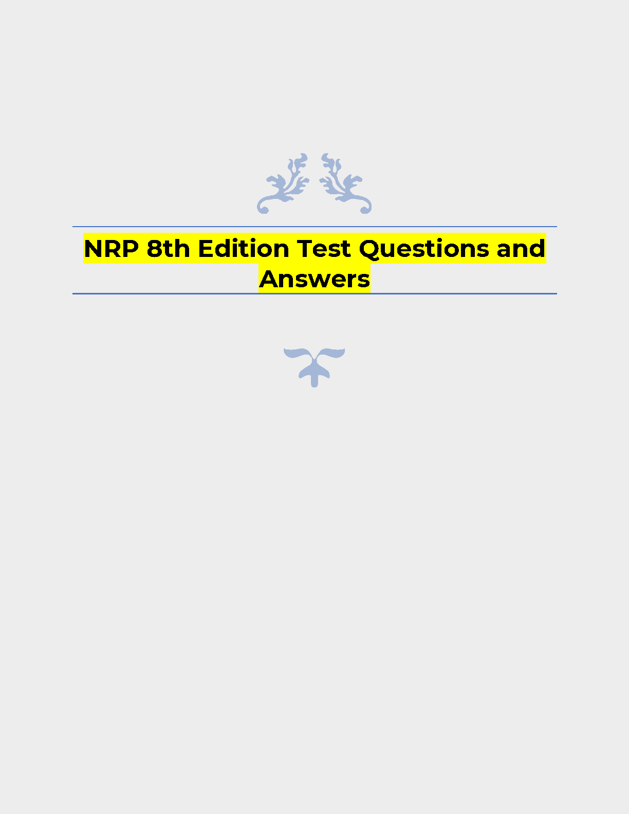 NRP 8th Edition Test Questions and Answers by American Heart Association, Debra L. Lyon, et al.