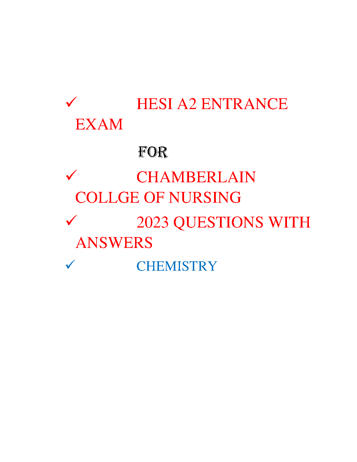 Pass your HESI A2 Entrance Exam on your first attempt with this study guide. It features 2023 questions and answers on Chemistry designed for Chamberlain College of Nursing students. Prepare for success and avoid resits.
