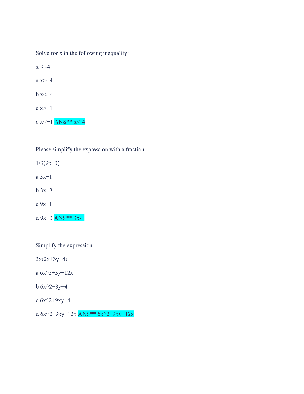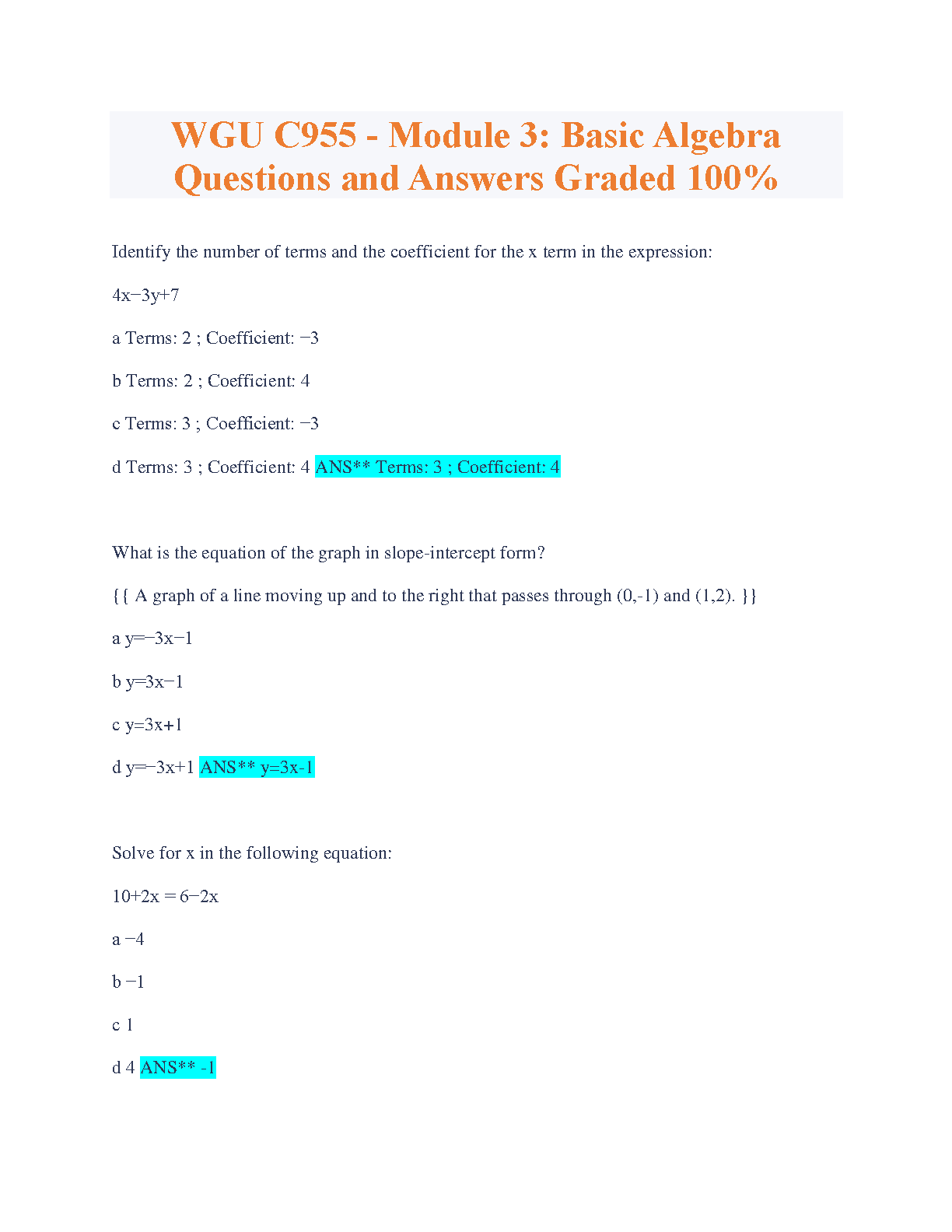 This resource provides a comprehensive set of solved questions and answers covering basic algebra concepts, designed to help students in WGU C955 excel in their studies.