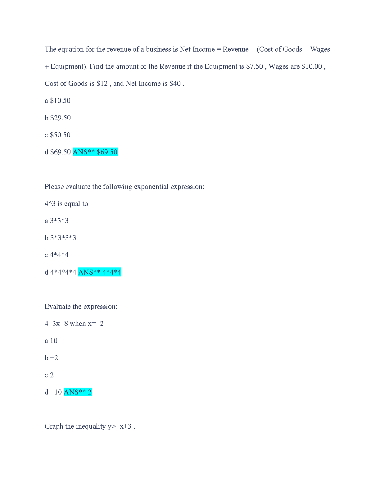 WGU C955 - Module 3: Basic Algebra Questions and Answers Graded 100%