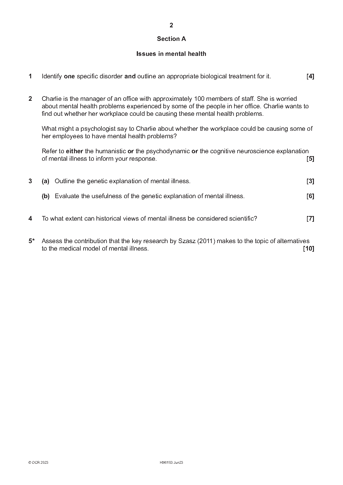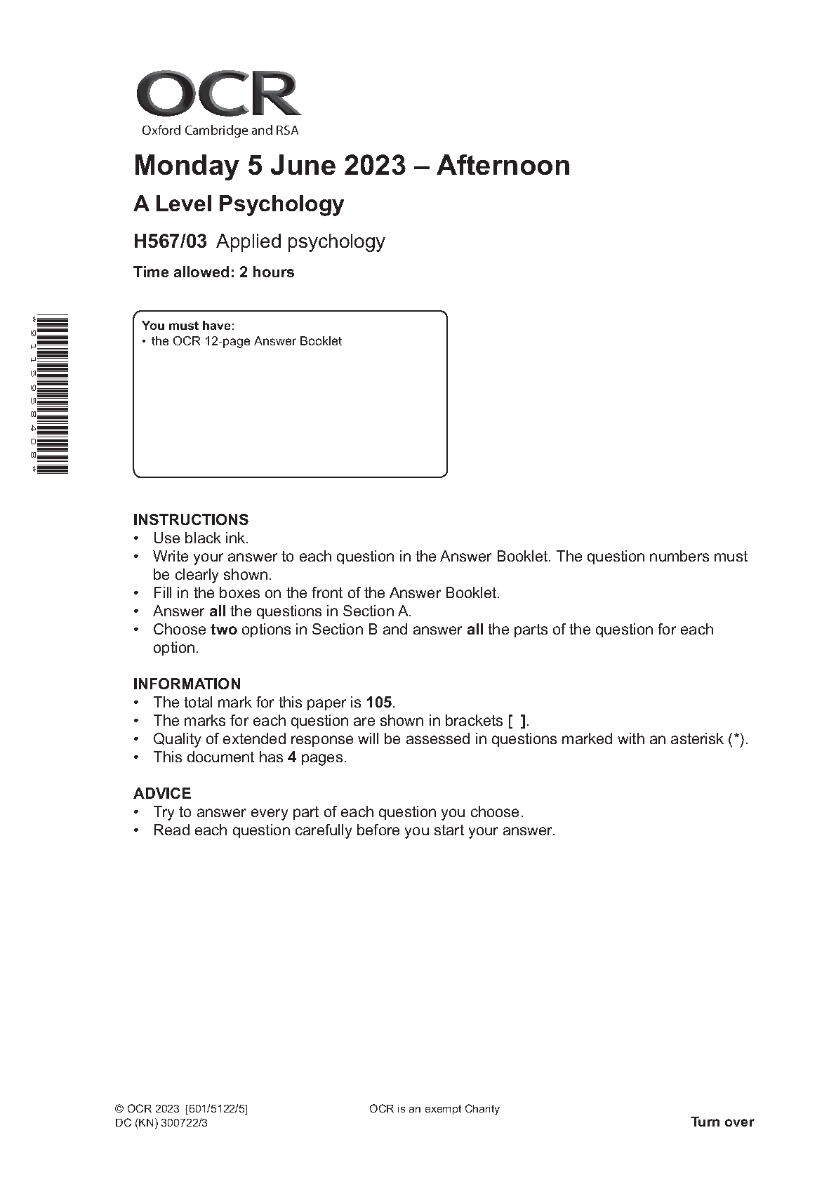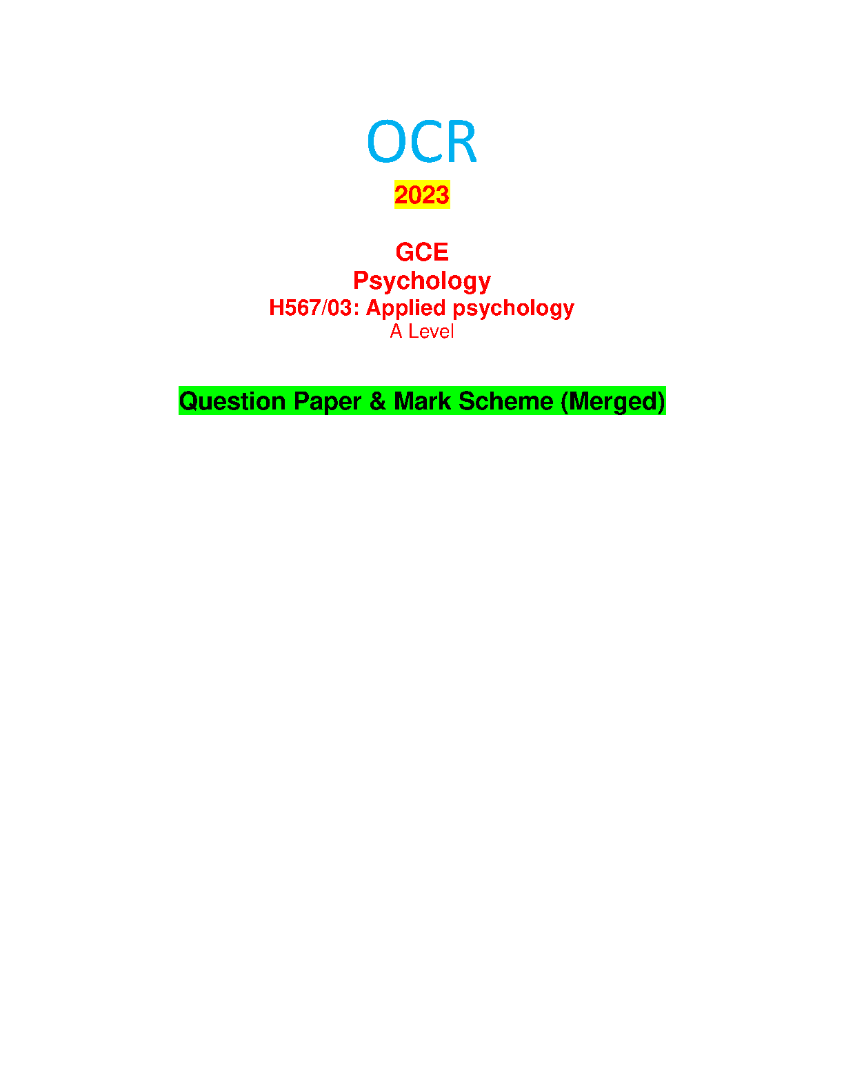 OCR 2023 GCE Psychology H567/03: Applied psychology - Question Paper & Mark Scheme (Merged) - A Level