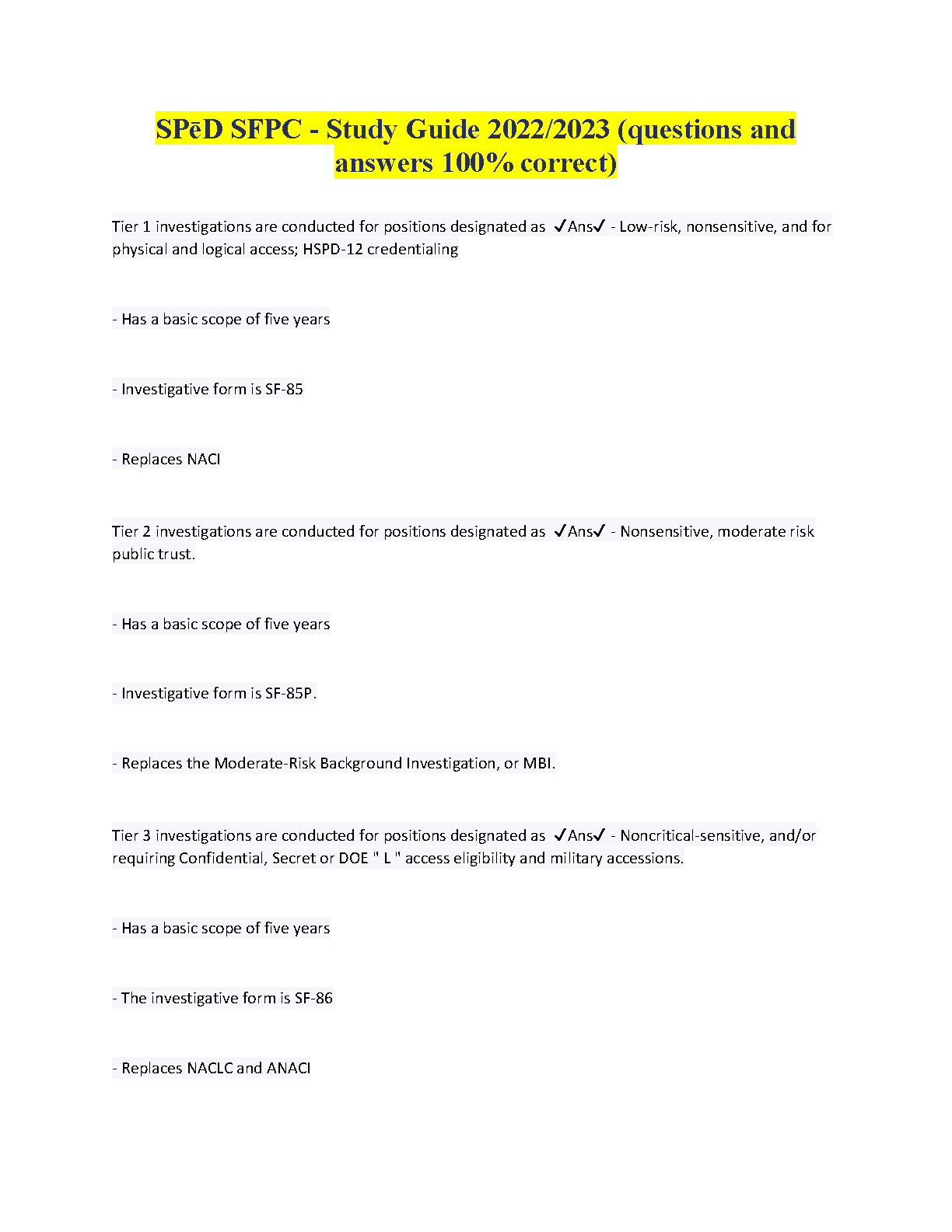 SpD SFPC - Study Guide 2022/2023 - Questions and Answers 100% Correct