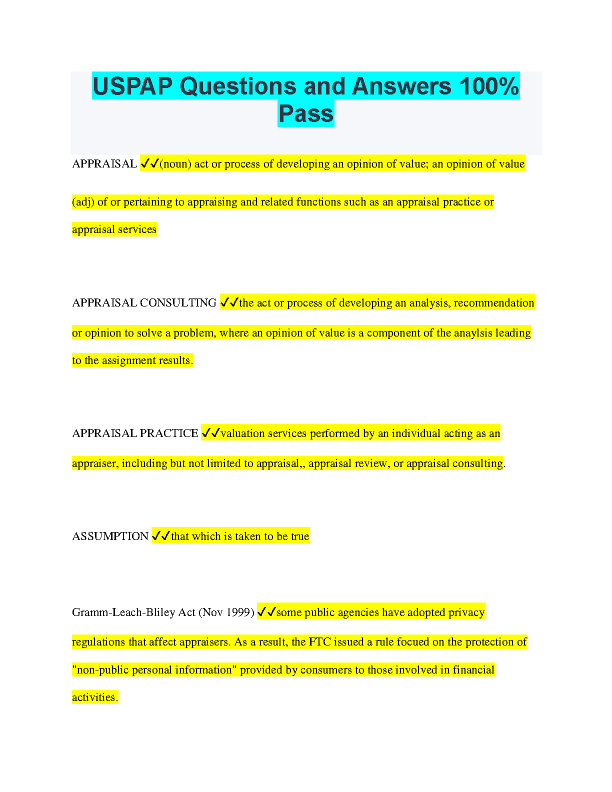 USPAP Questions and Answers 100% Pass: The Ultimate Guide to Passing Your USPAP Exam on the First Attempt