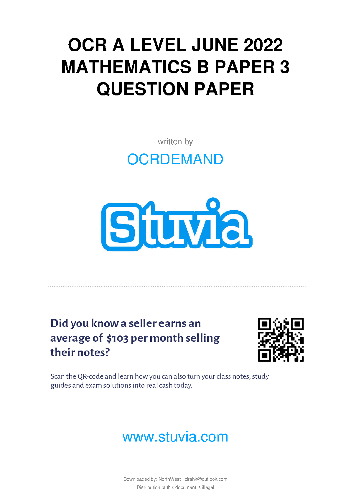 OCR A Level June 2022 Mathematics B Paper 3 Question Paper by OCRDemand
