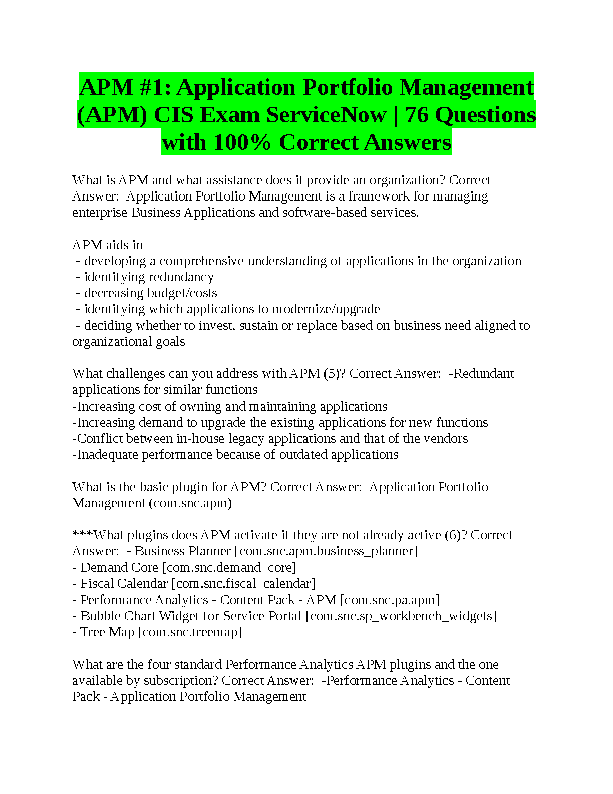 APM #1: Application Portfolio Management (APM) CIS Exam ServiceNow | 76 Questions with 100% Correct Answers - 2024/2025 Edition