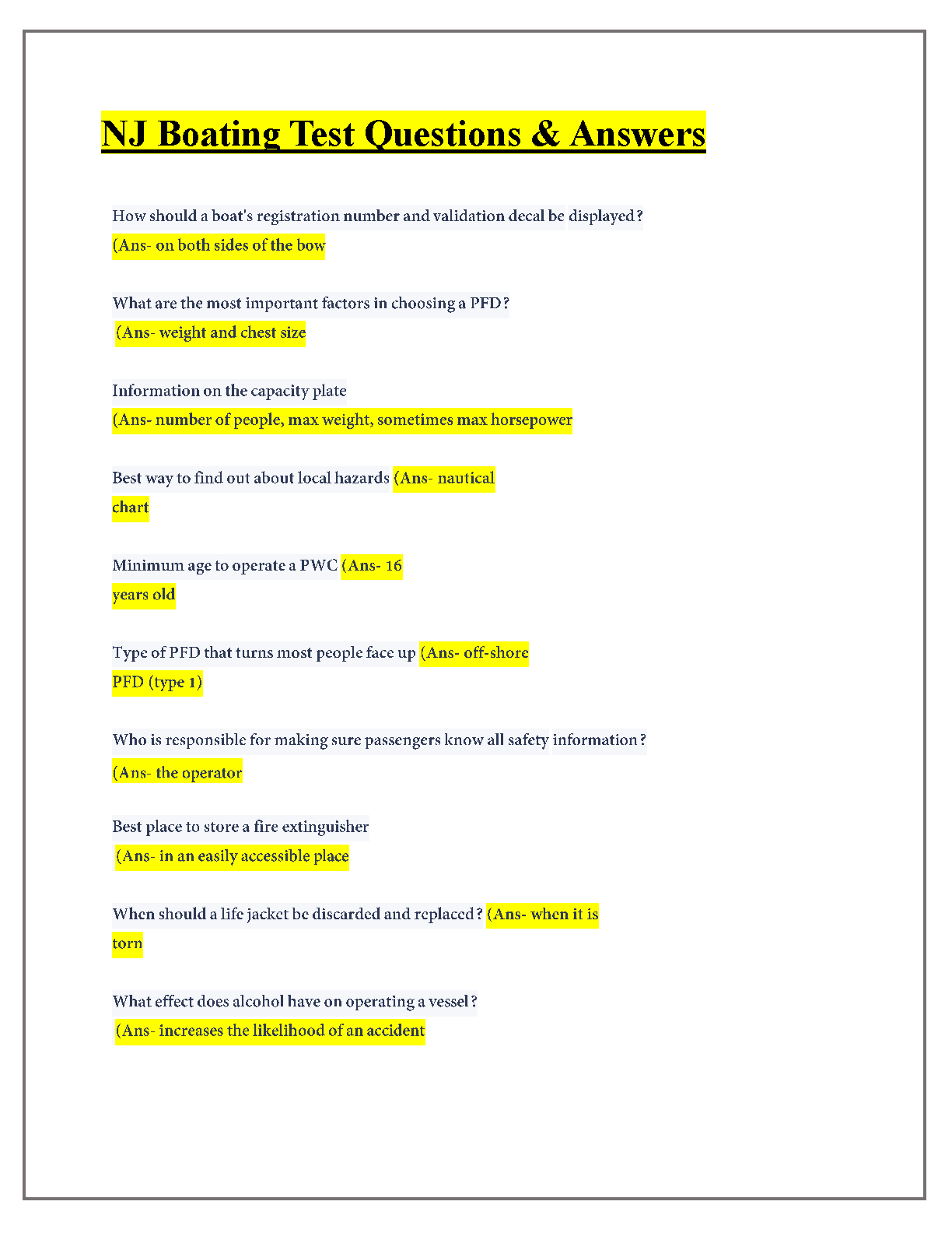 NJ Boating Test Questions & Answers: Pass Your Exam First Attempt!