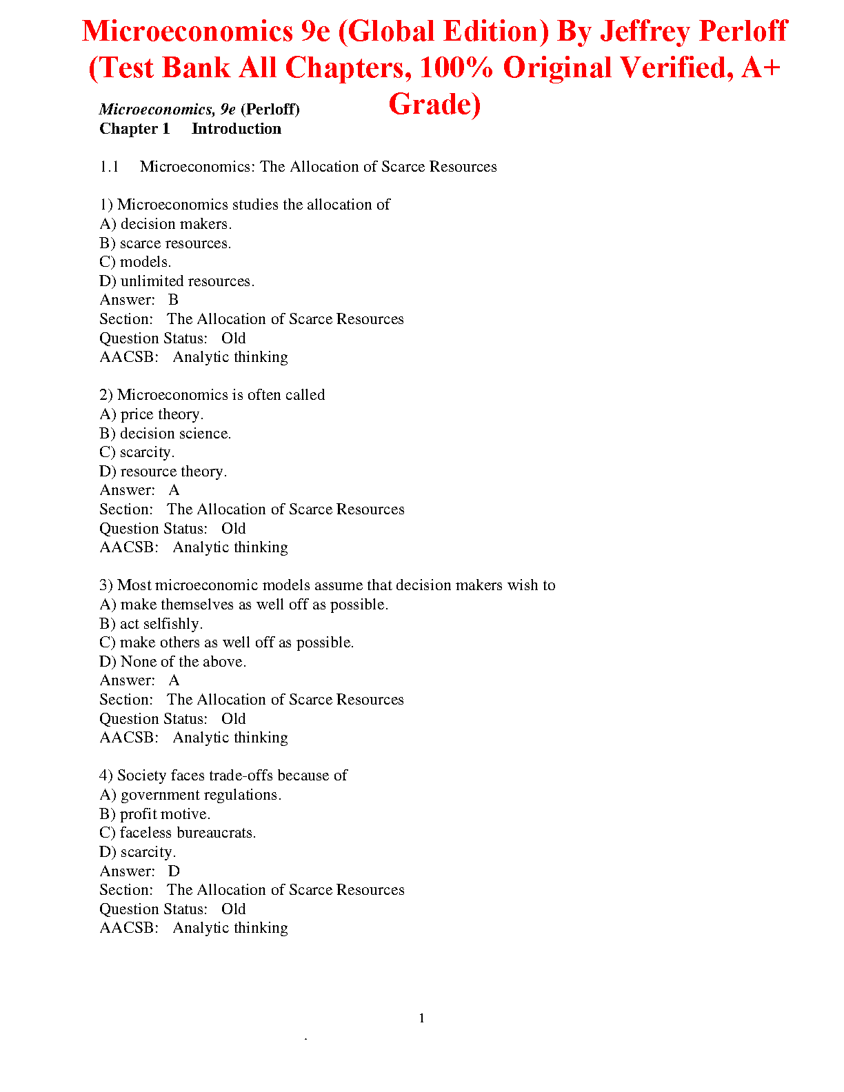 This comprehensive test bank for Microeconomics 9e (Global Edition) by Jeffrey Perloff and Michael R. Baye is designed to help you master the concepts and prepare for your exams with confidence. Our test bank provides a wide range of multiple-choice, true/false, and short answer questions covering all the key topics, making sure you are fully prepared to ace your exams and avoid resits.