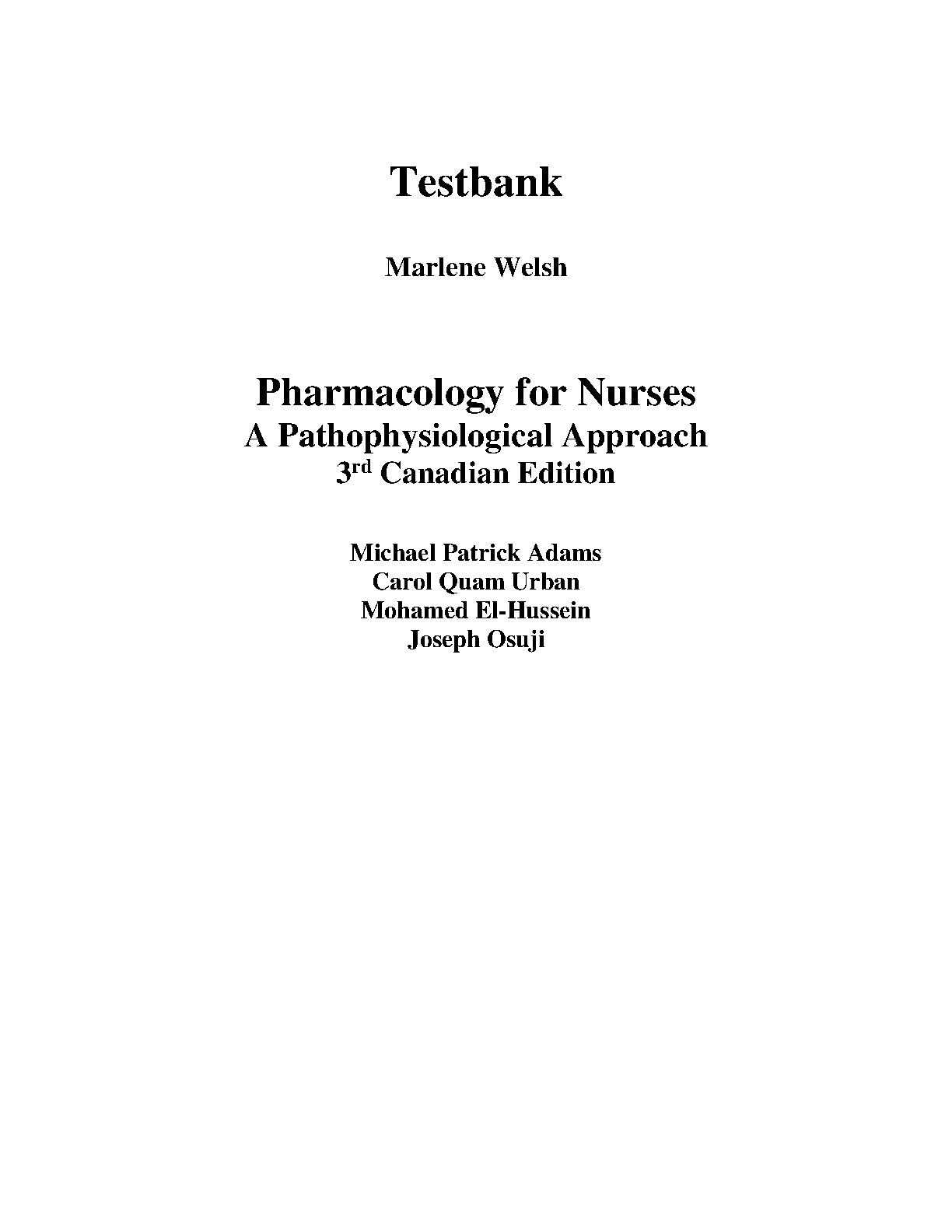Pharmacology for Nurses: A Pathophysiological Approach 3rd Canadian Edition by Michael Patrick Adams, Carol Quam Urban, Mohamed El-Hussein, Joseph Osuji Test Bank