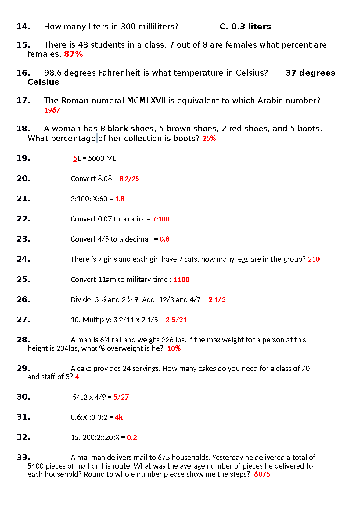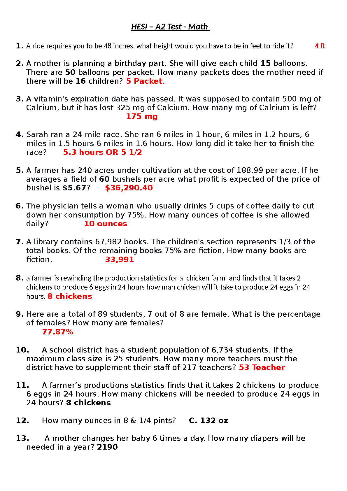 HESI – A2 Test - Math SOLUTIONS WITH 100% CORRECT ANSWERS