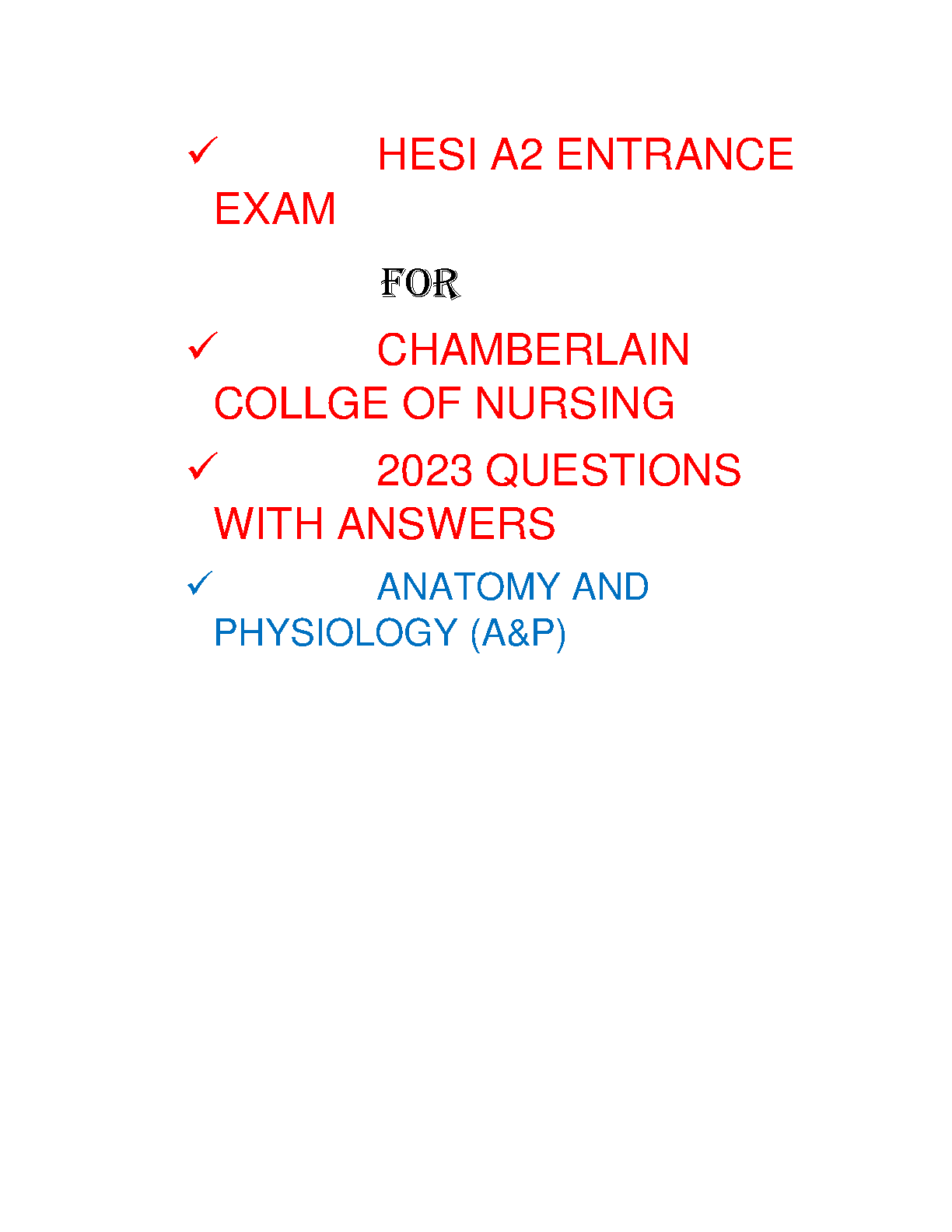 HESI A2 ENTRANCE EXAM FOR CHAMBERLAIN COLLGE OF NURSING 2023 QUESTIONS WITH ANSWERS ANATOMY AND PHYSIOLOGY (A&P). DOWNLOAD on www.hackedexams.com INSTANTLY.