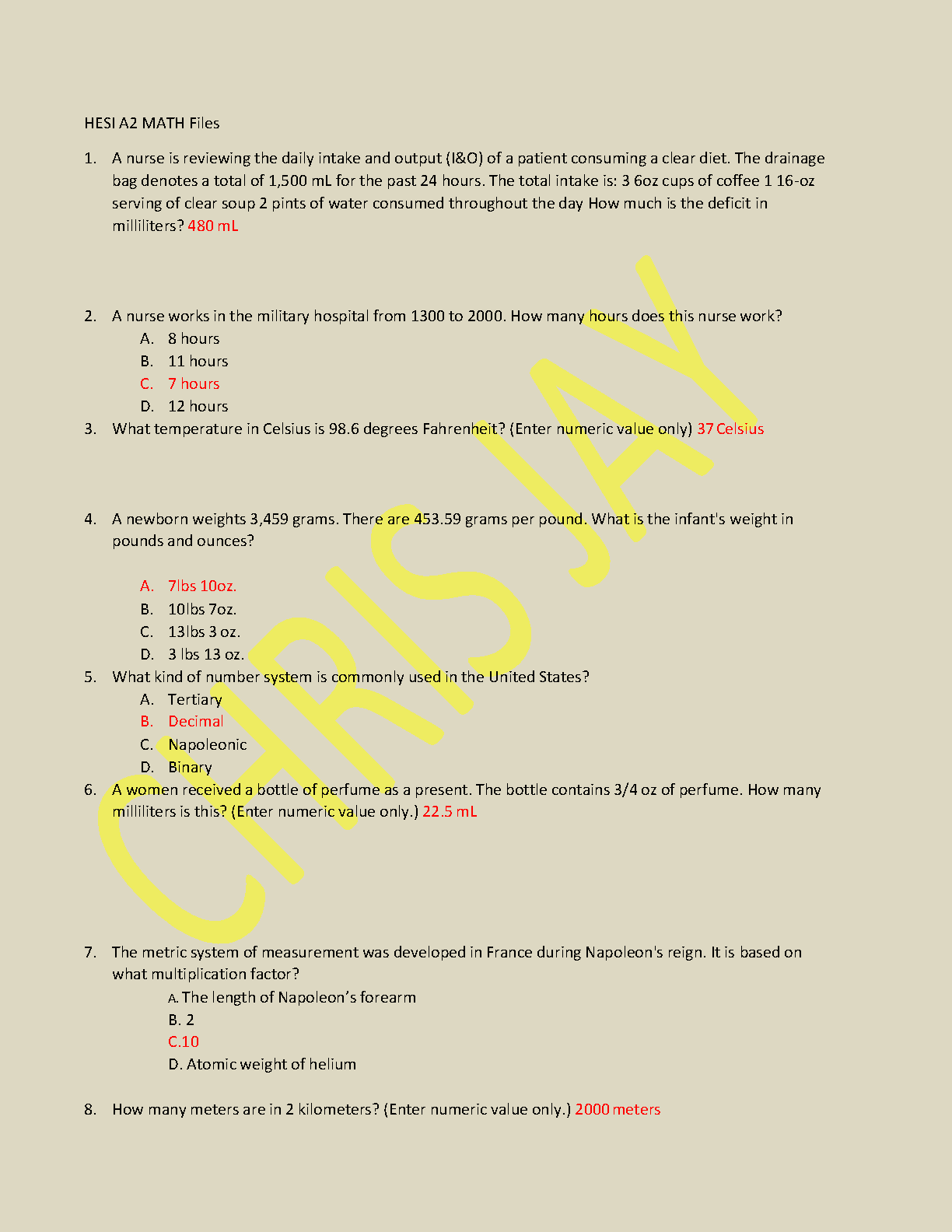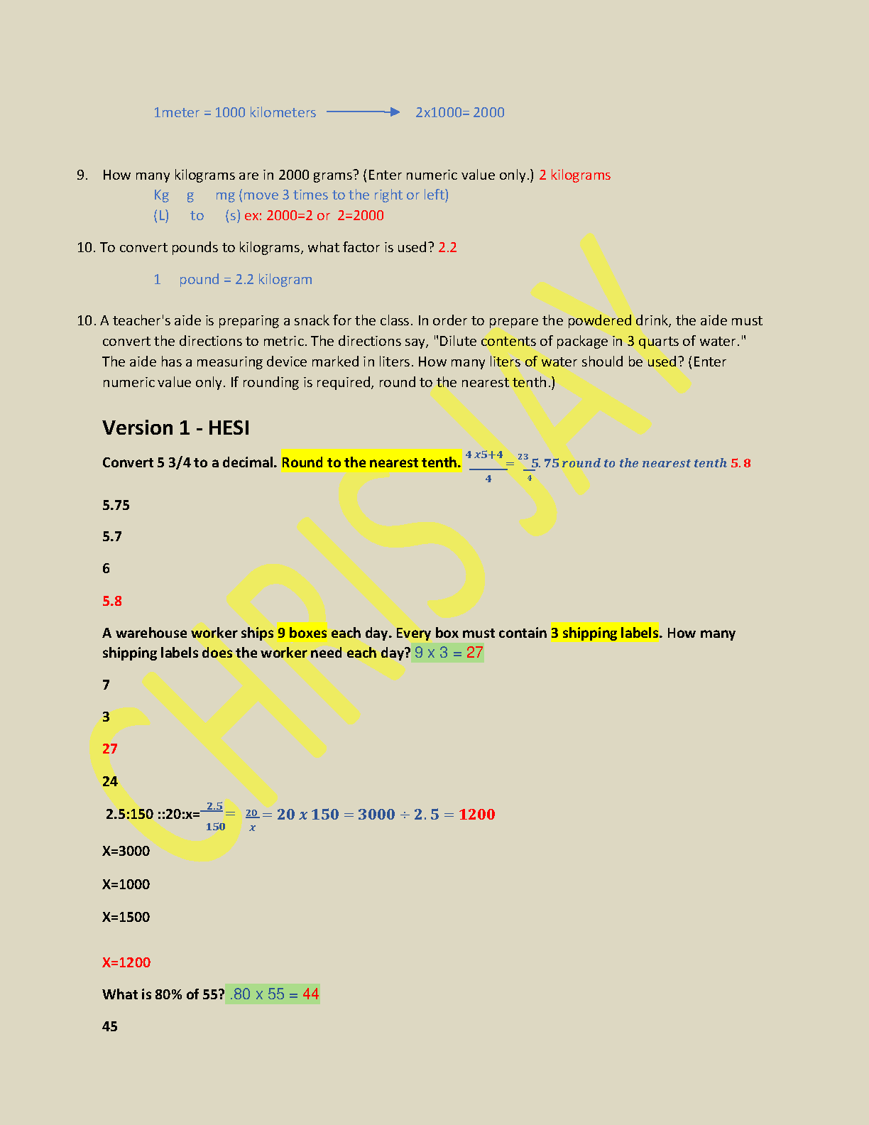 HESI A2 MATH QUESTIONS AND CORRECT ANSWERS 2023
