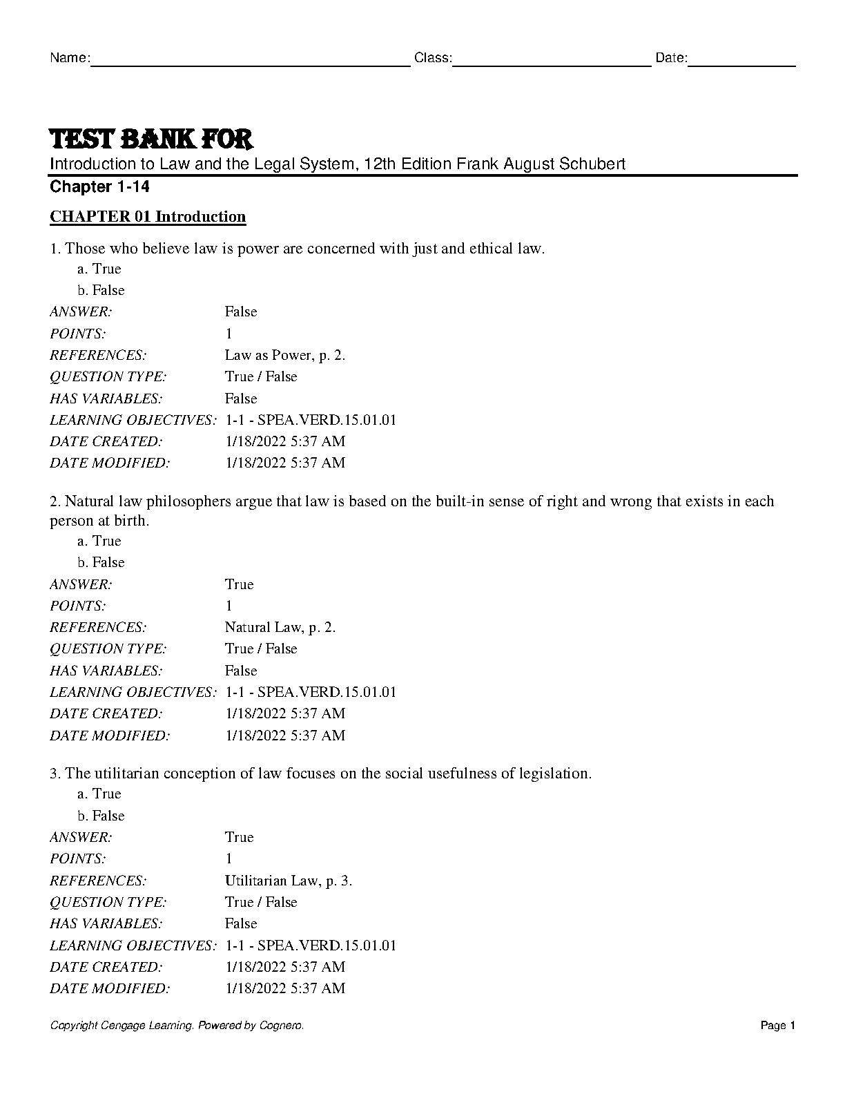 This comprehensive test bank for Introduction to Law and the Legal System, 12th Edition, provides instructors with a valuable resource for creating and assessing student learning. Featuring a wide range of multiple-choice, true/false, and short answer questions, this test bank is designed to help students master the key concepts and principles of the legal system.