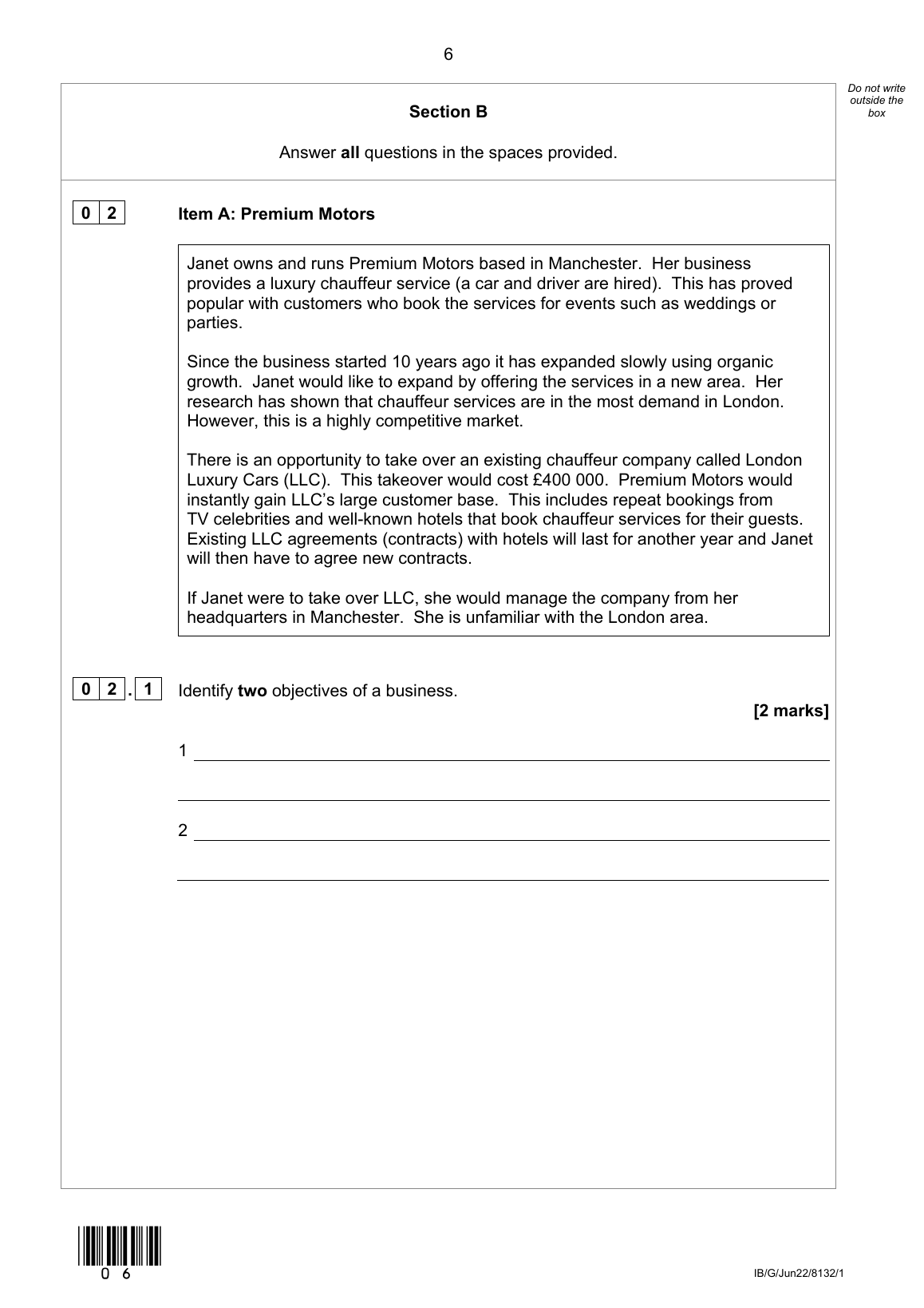 AQA GCSE BUSINESS PAPER 1 JUNE 2022 QUESTION PAPER (8132/1: Paper 1 - Influences of operations and HRM on business activity)