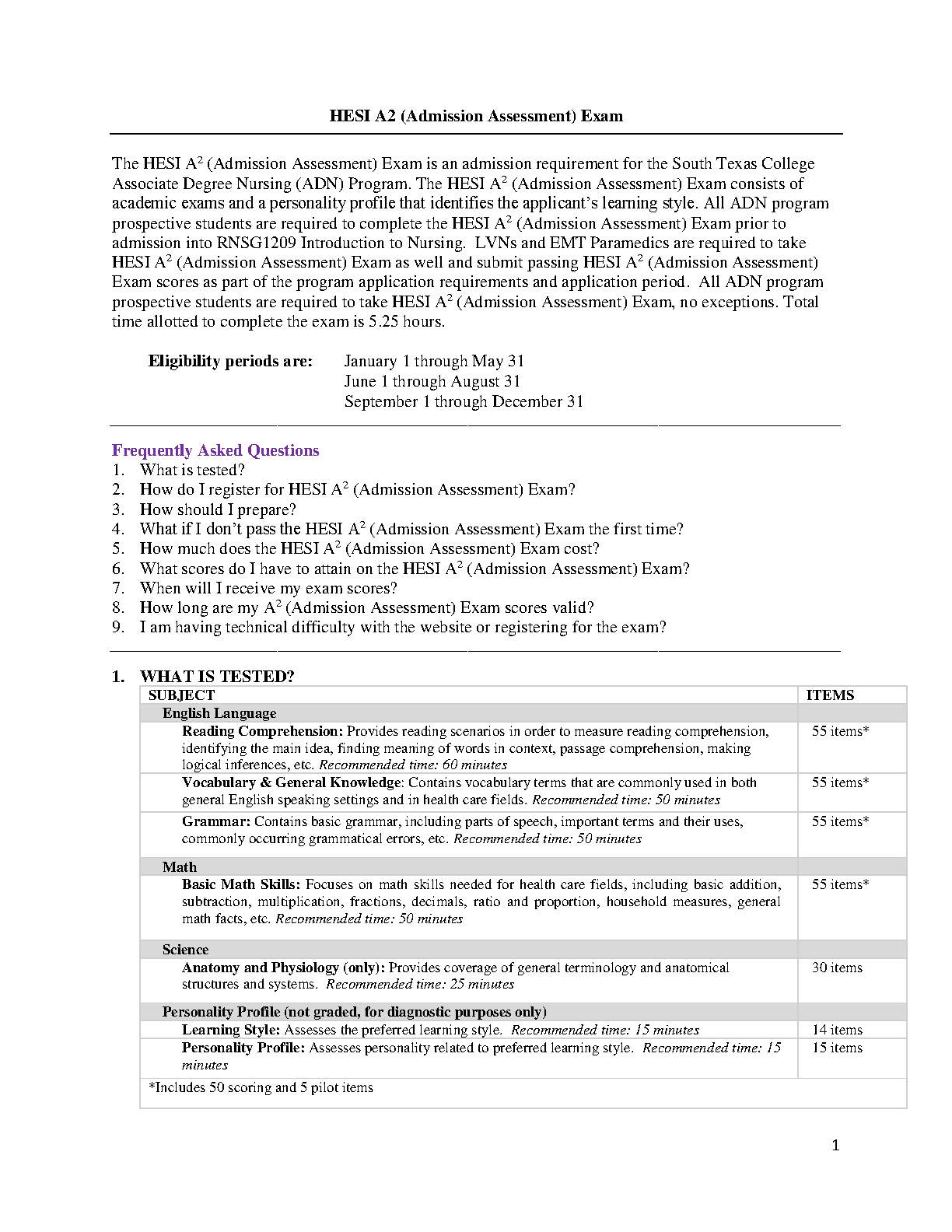 HESI A2 (Admission Assessment) EXAMINATION GUIDE 2023
