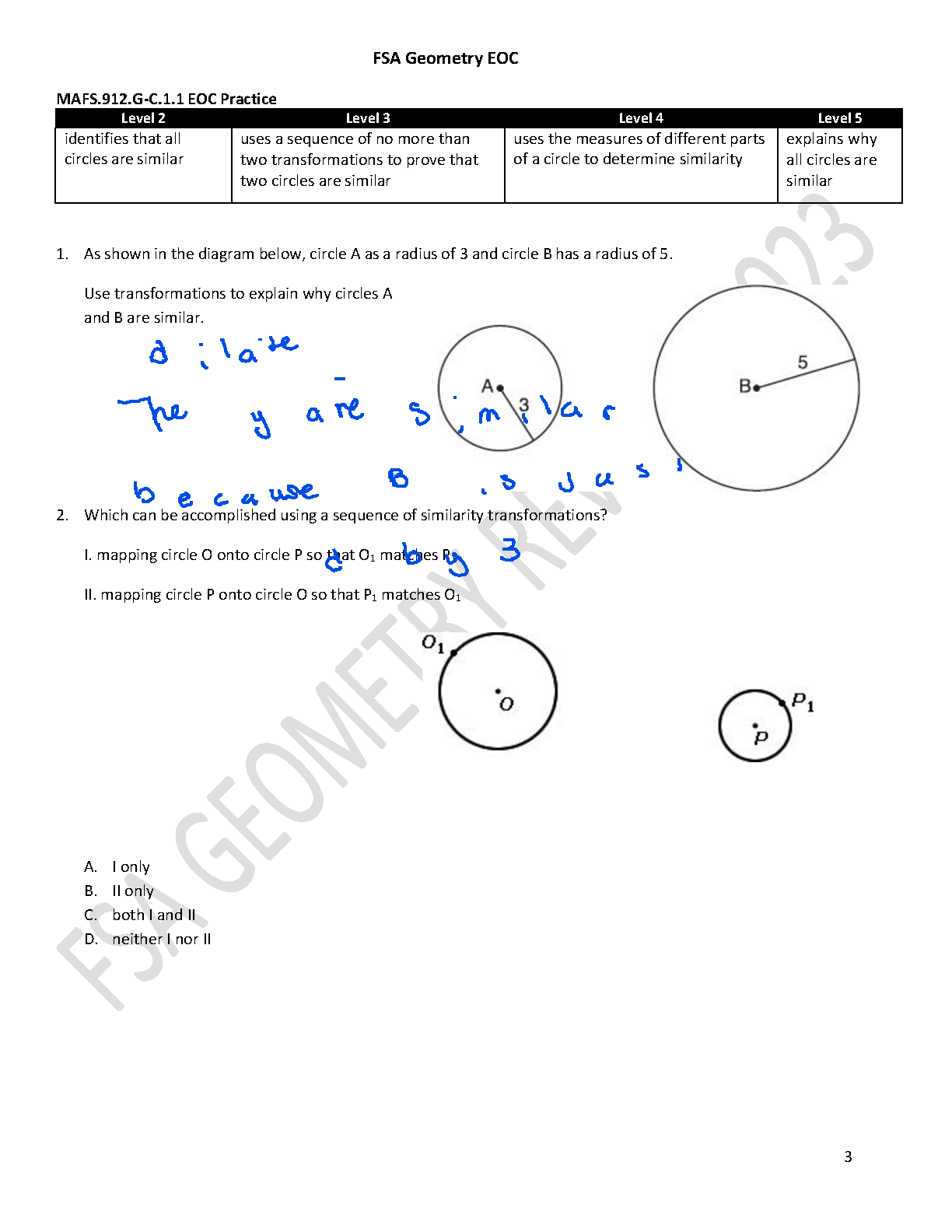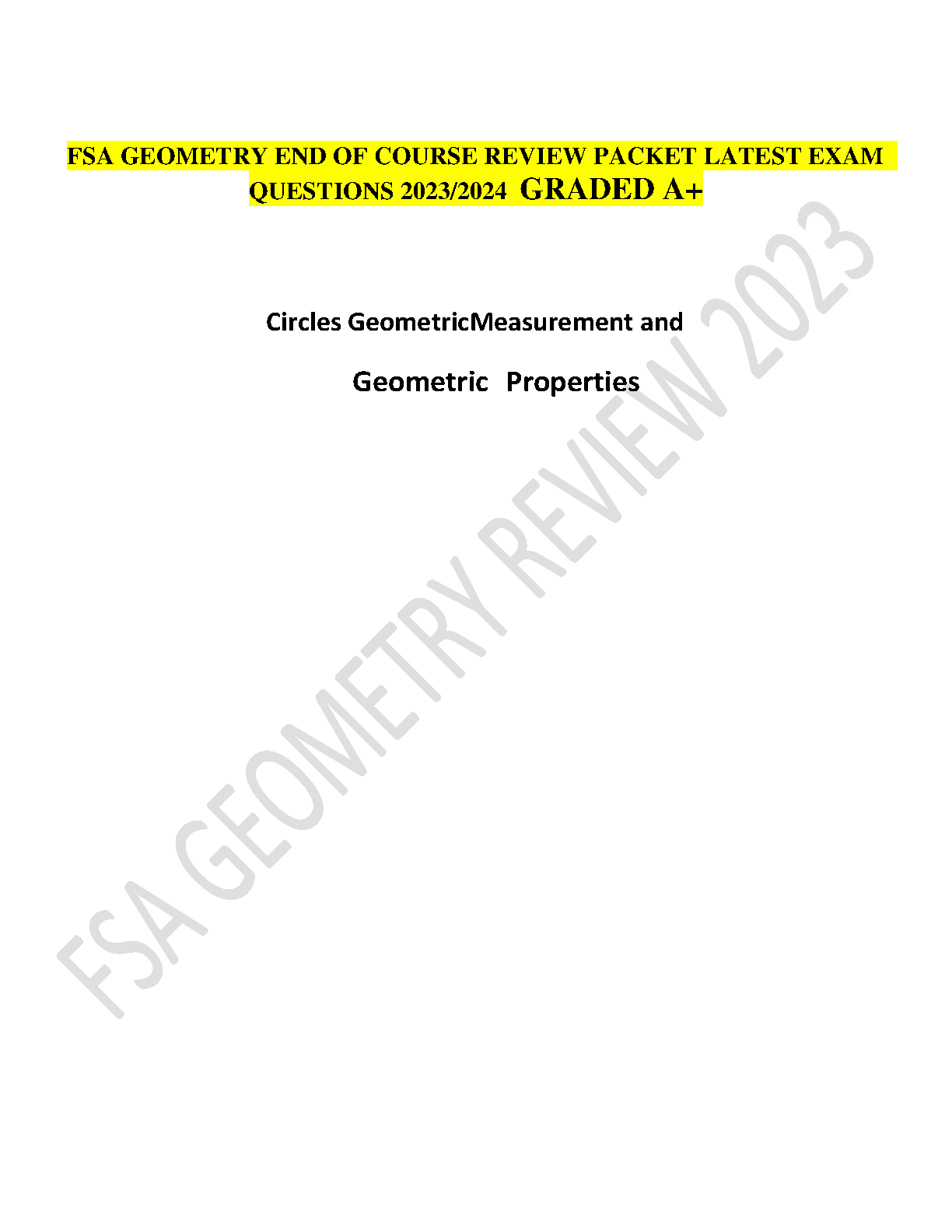 FSA Geometry End of Course Review Packet 2023/2024: Latest Exam Questions Graded A+