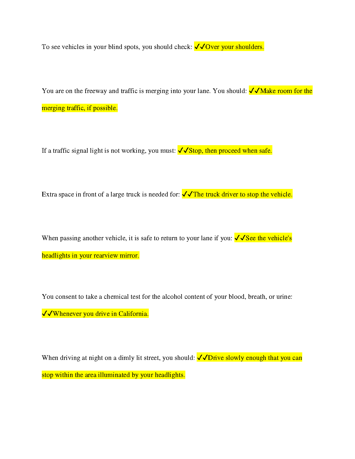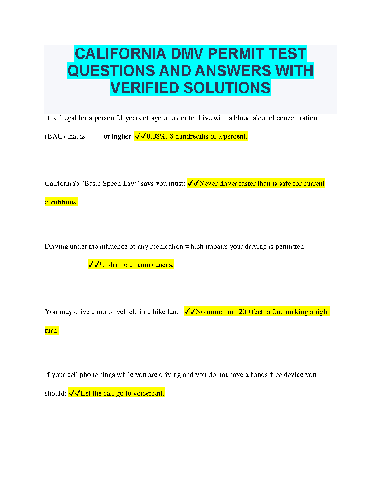 California DMV Permit Test Questions and Answers with Verified Solutions 2024/2025 Edition