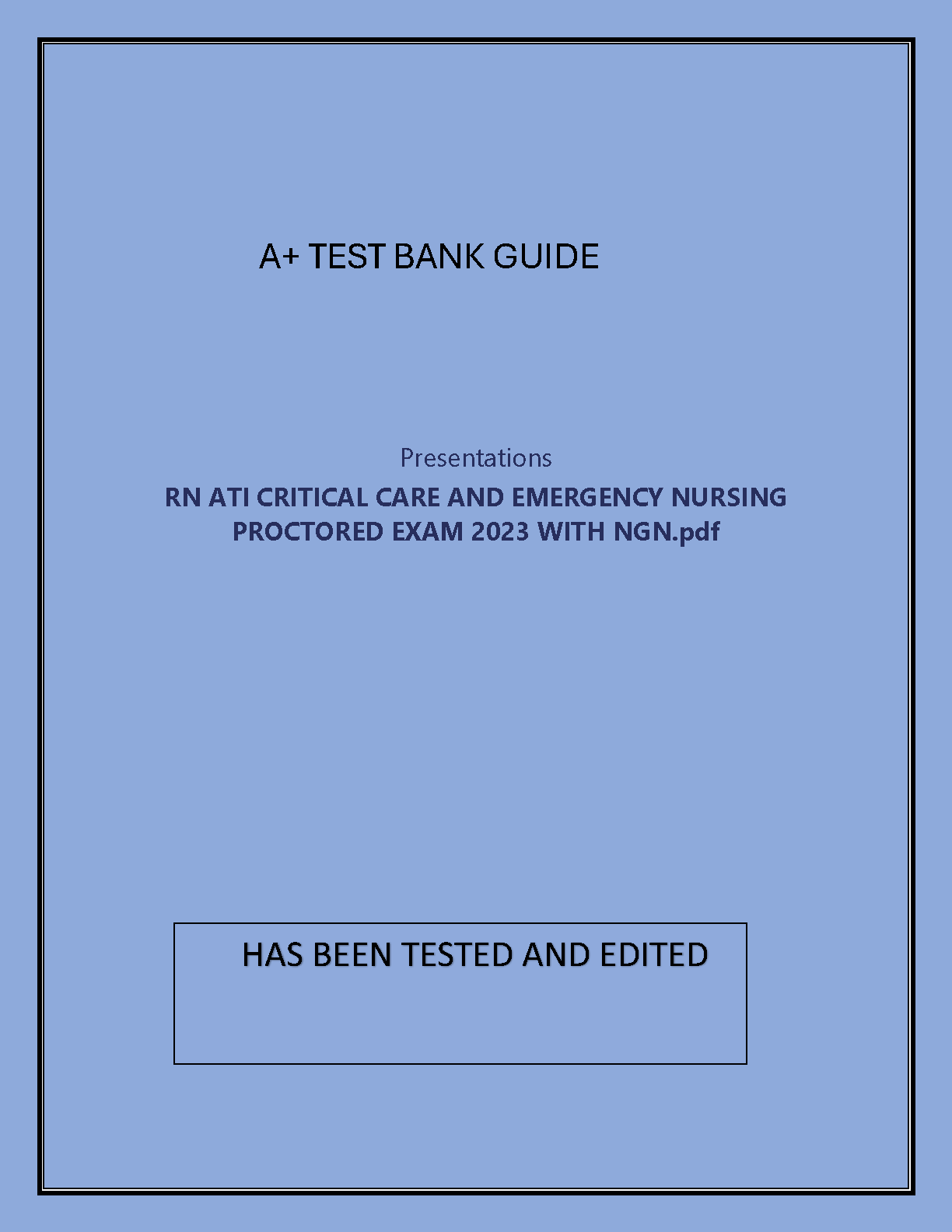 This comprehensive ATI RN Critical Care and Emergency Nursing Proctored Exam 2023 test bank guide is designed to equip you with the knowledge and confidence needed to ace your exam. With verified answers and detailed explanations, this resource will help you identify your strengths and weaknesses, master crucial concepts, and achieve the highest possible score.