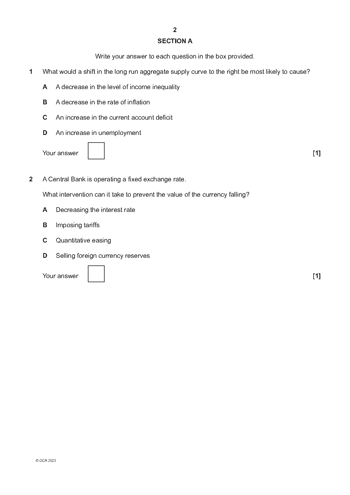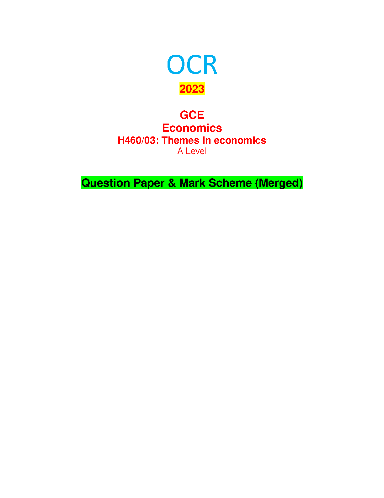 OCR Economics H460/03: Themes in Economics A Level 2023 Question Paper & Mark Scheme (Merged)