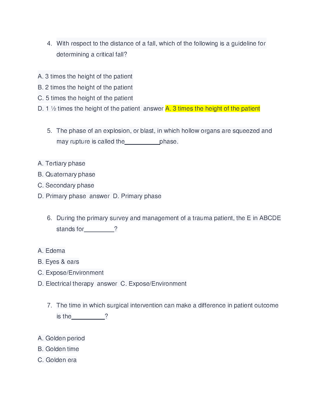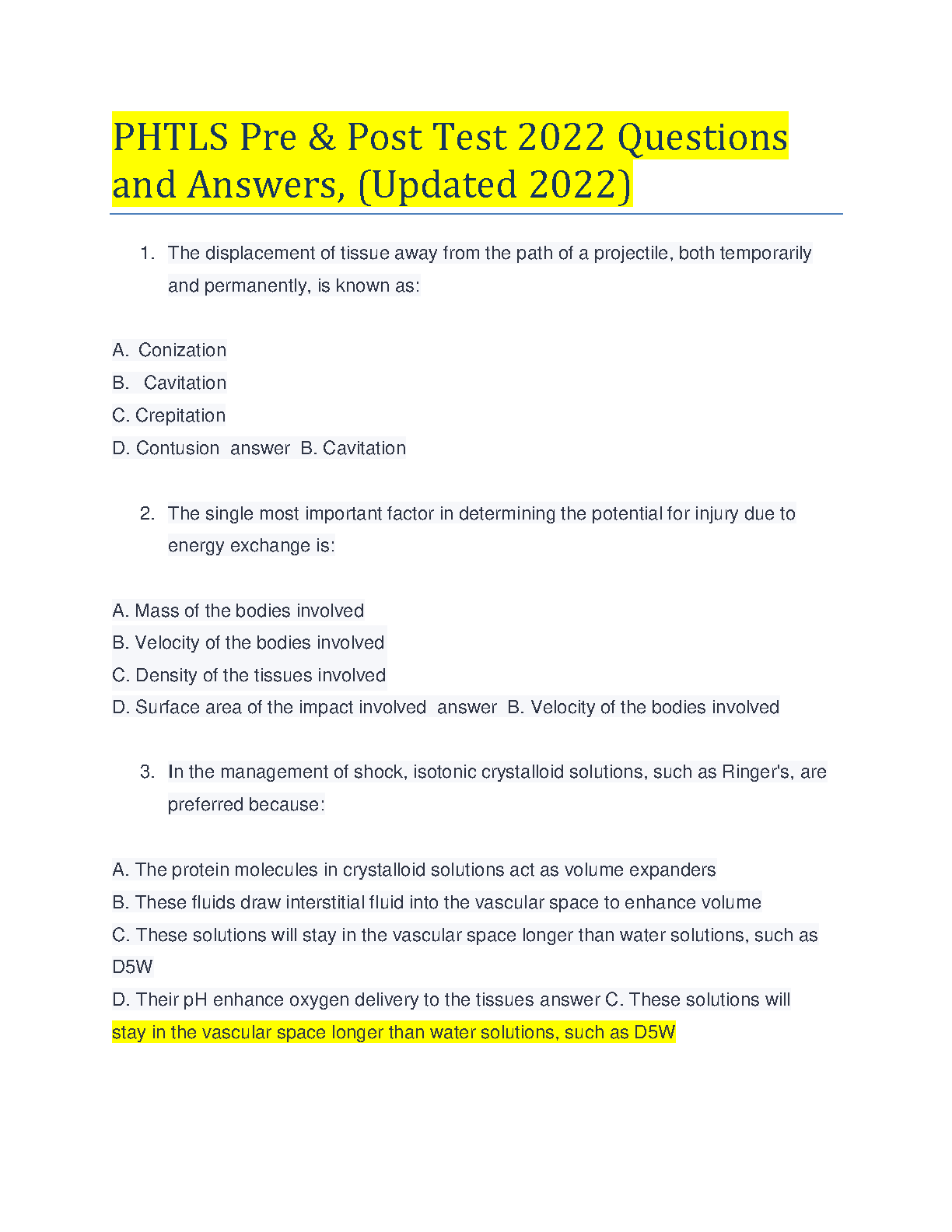 PHTLS Pre & Post Test 2022 Questions and Answers, Updated 2022 - PHTLS