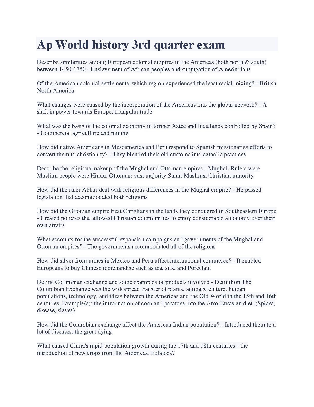 AP World History 3rd Quarter Exam Review Guide for Success in 2024/2025
