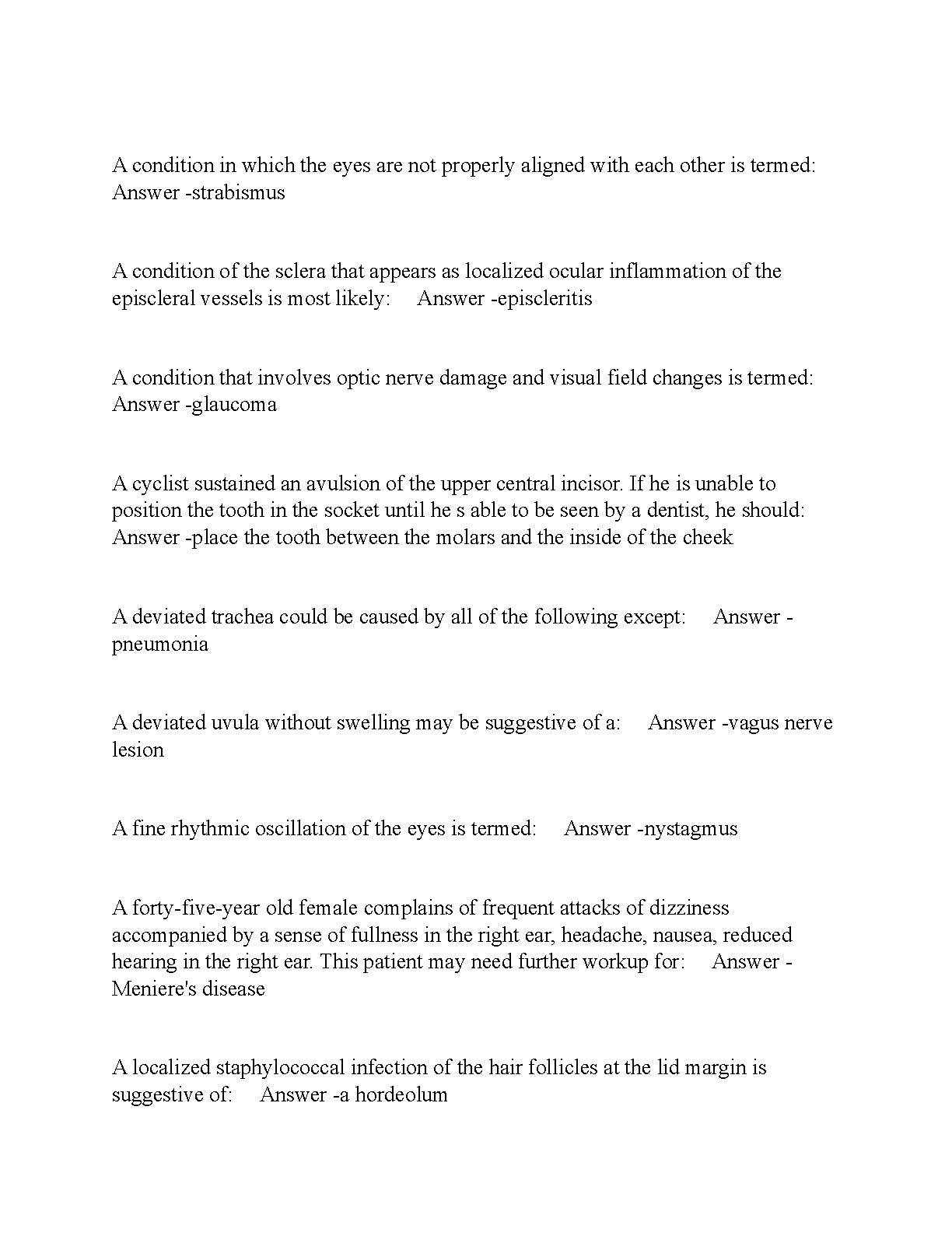 EENT EXAM BANK Q&A COMPLETE VERIFIED GUIDE RATED A.
