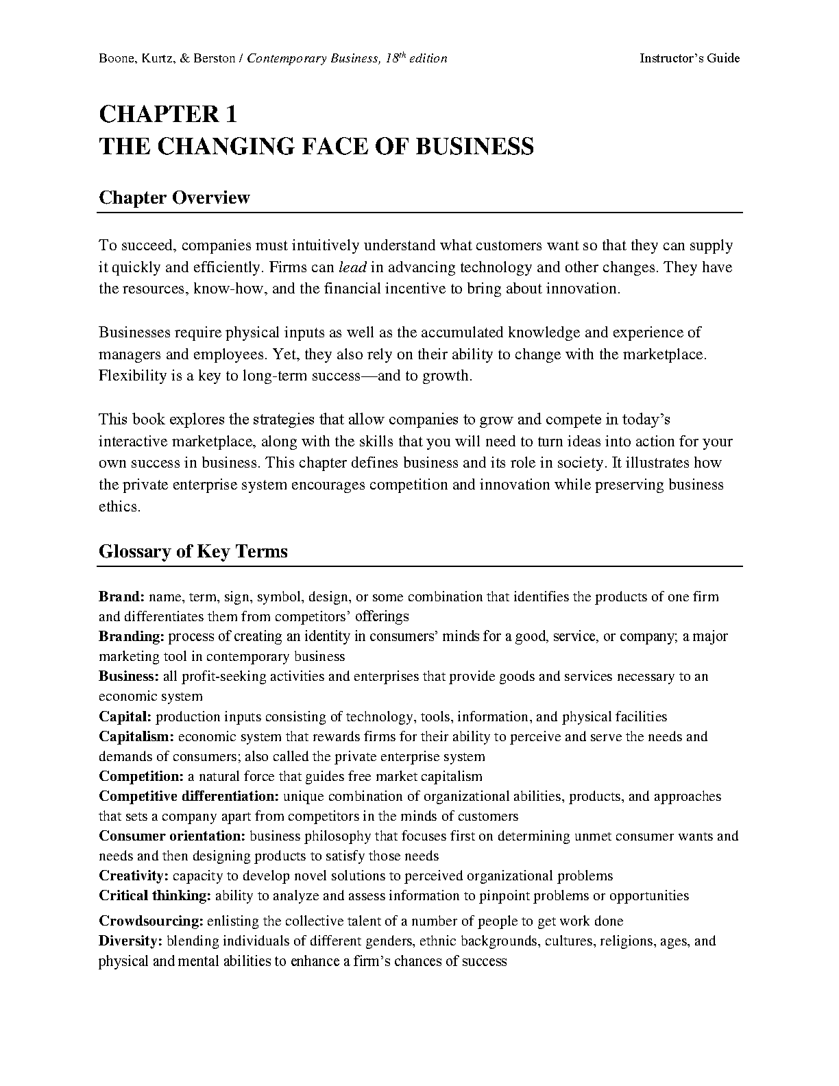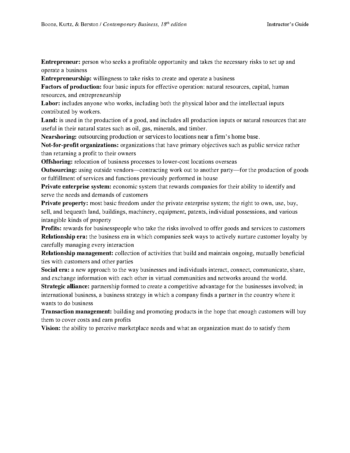 Solutions Manual for Contemporary Business, 18e - Louis Boone, David Kurtz, Susan Berston
