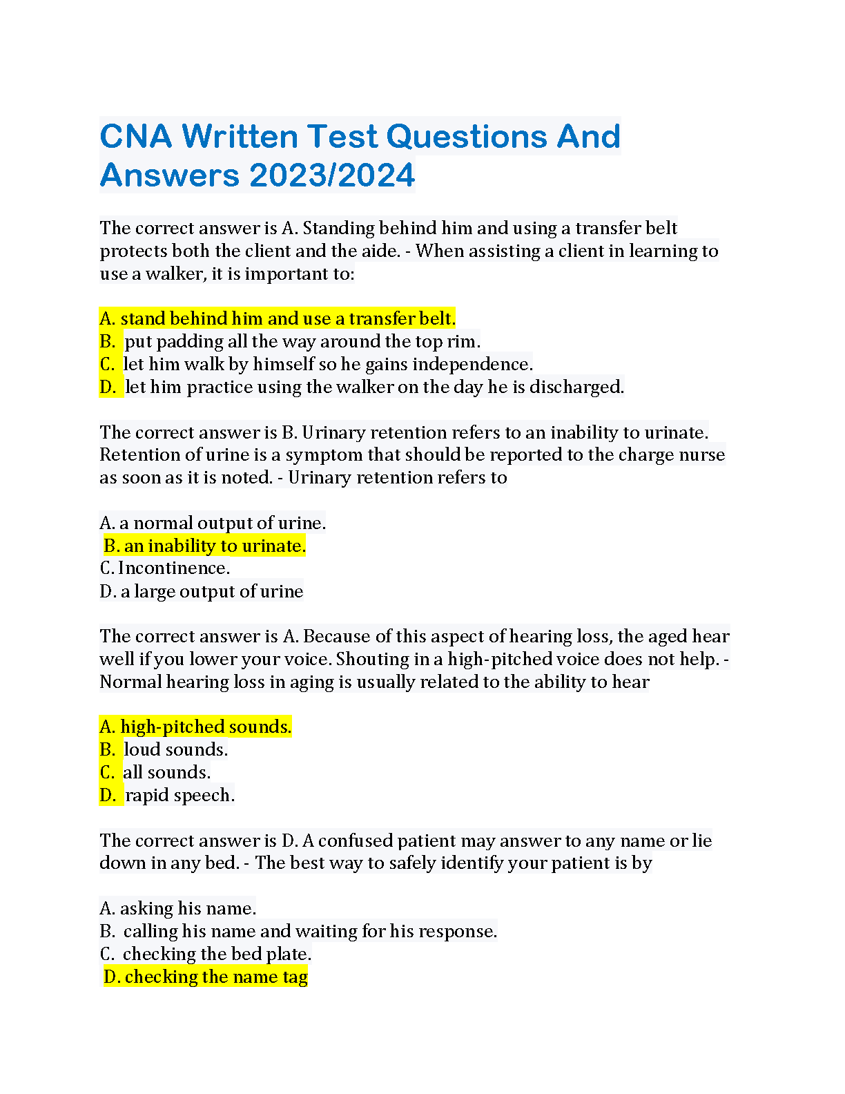 CNA Written Test Questions And Answers 2023/2024: Ace Your CNA Exam On The First Attempt!