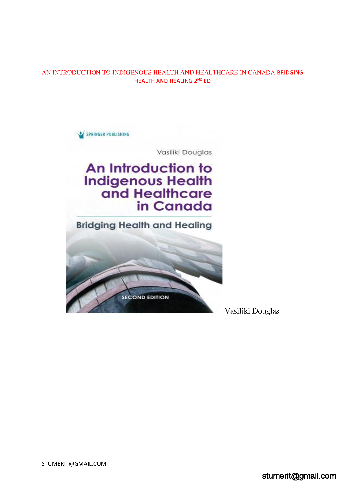 Get the best study guide for "An Introduction to Indigenous Health and Healthcare in Canada: Bridging Health and Healing" second edition, written by Vasiliiki Douglas, to help you pass exams on your first attempt, avoiding resits.