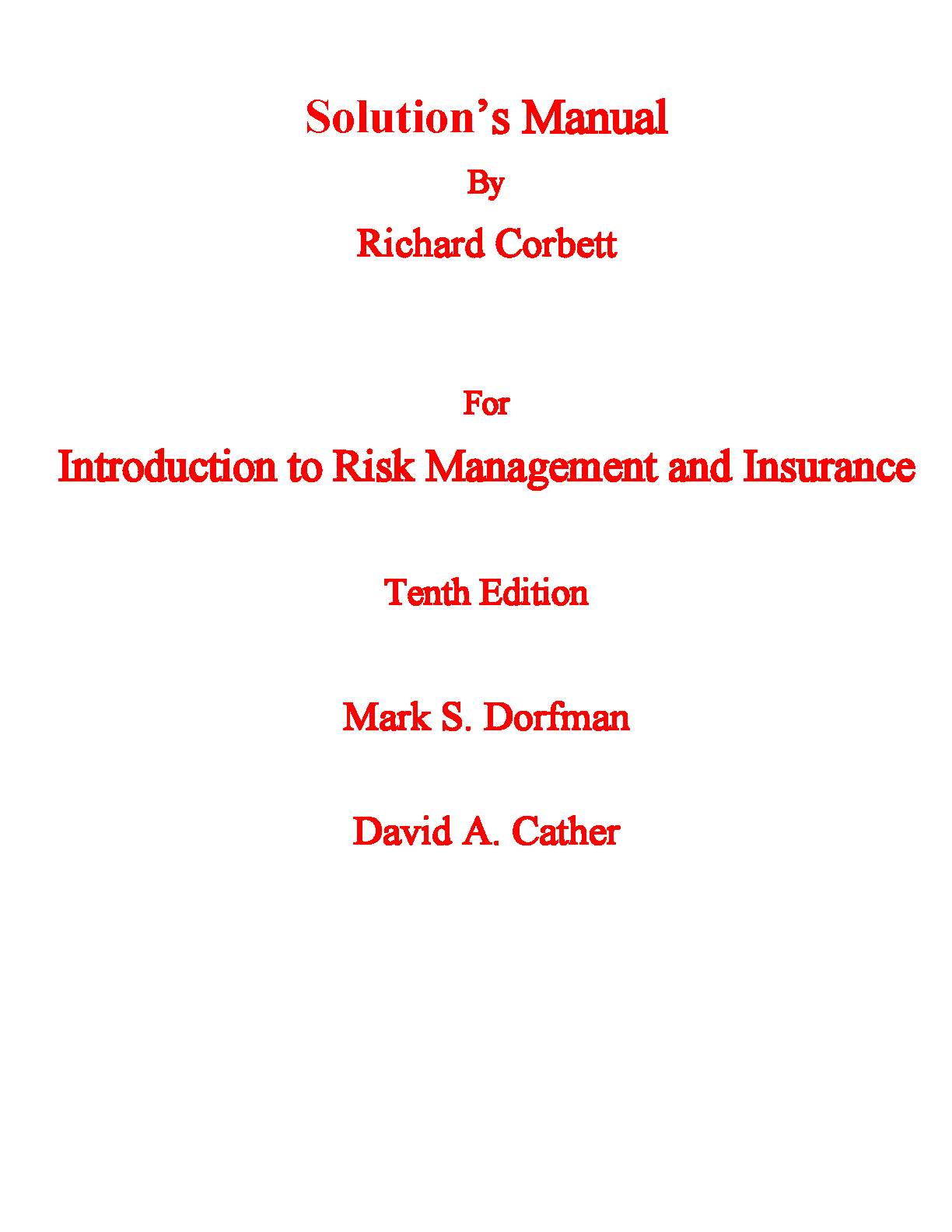 Introduction to Risk Management and Insurance 10th Edition Solution Manual by Mark S. Dorfman, David A. Cather and Richard Corbett