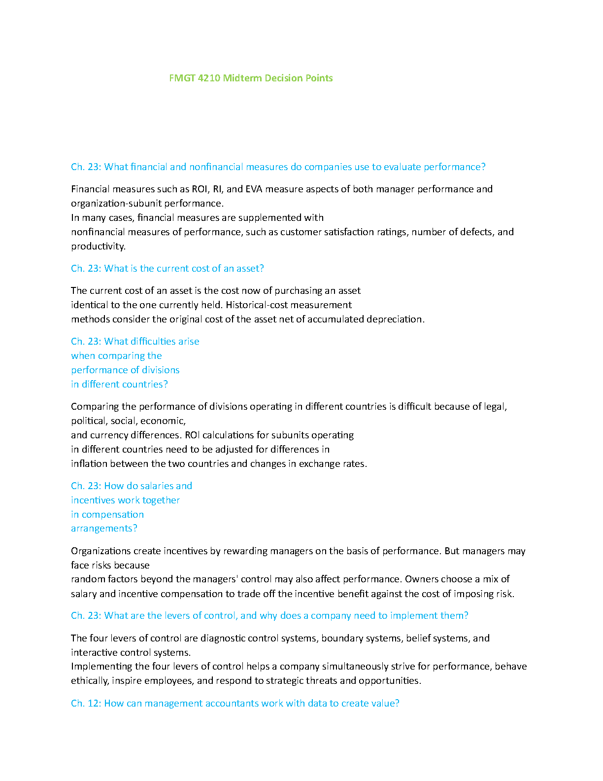 Get a head start on your FMGT 4210 Midterm with our expertly curated study guide designed to help you master the crucial concepts and ace your exam on the first attempt. This resource is meticulously crafted to help students avoid resits and achieve success in their studies.