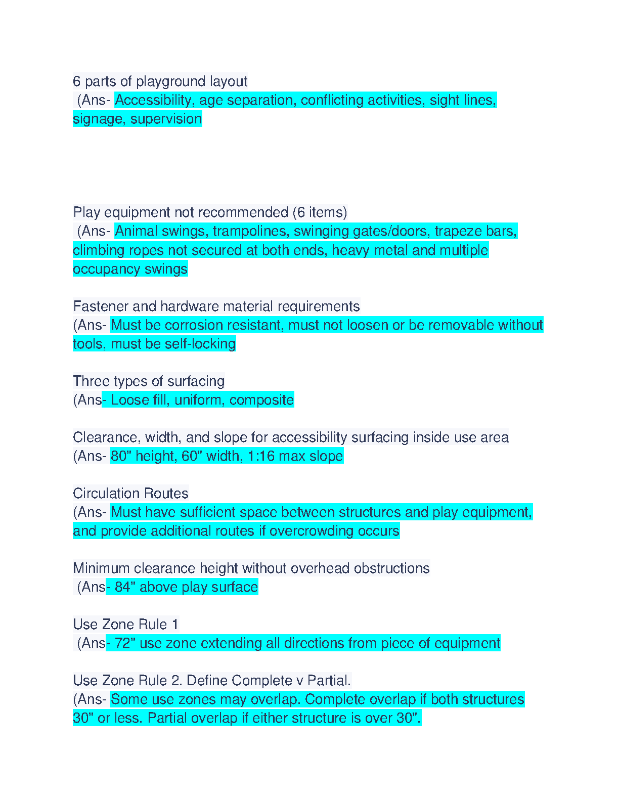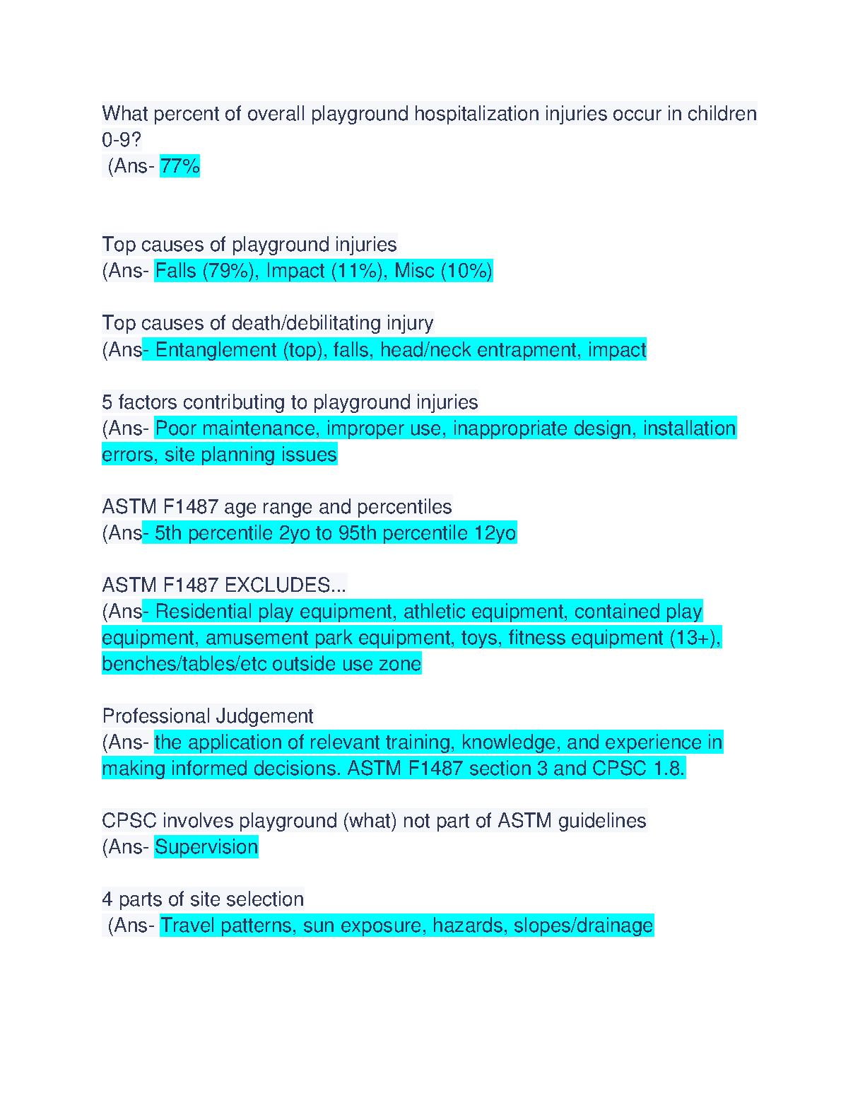 Comprehensive study guide for Playground Safety Standards. This document offers a rich compilation of questions and answers covering key concepts, standards, and regulations related to public playground safety. This resource provides a reliable method for learning and reviewing.