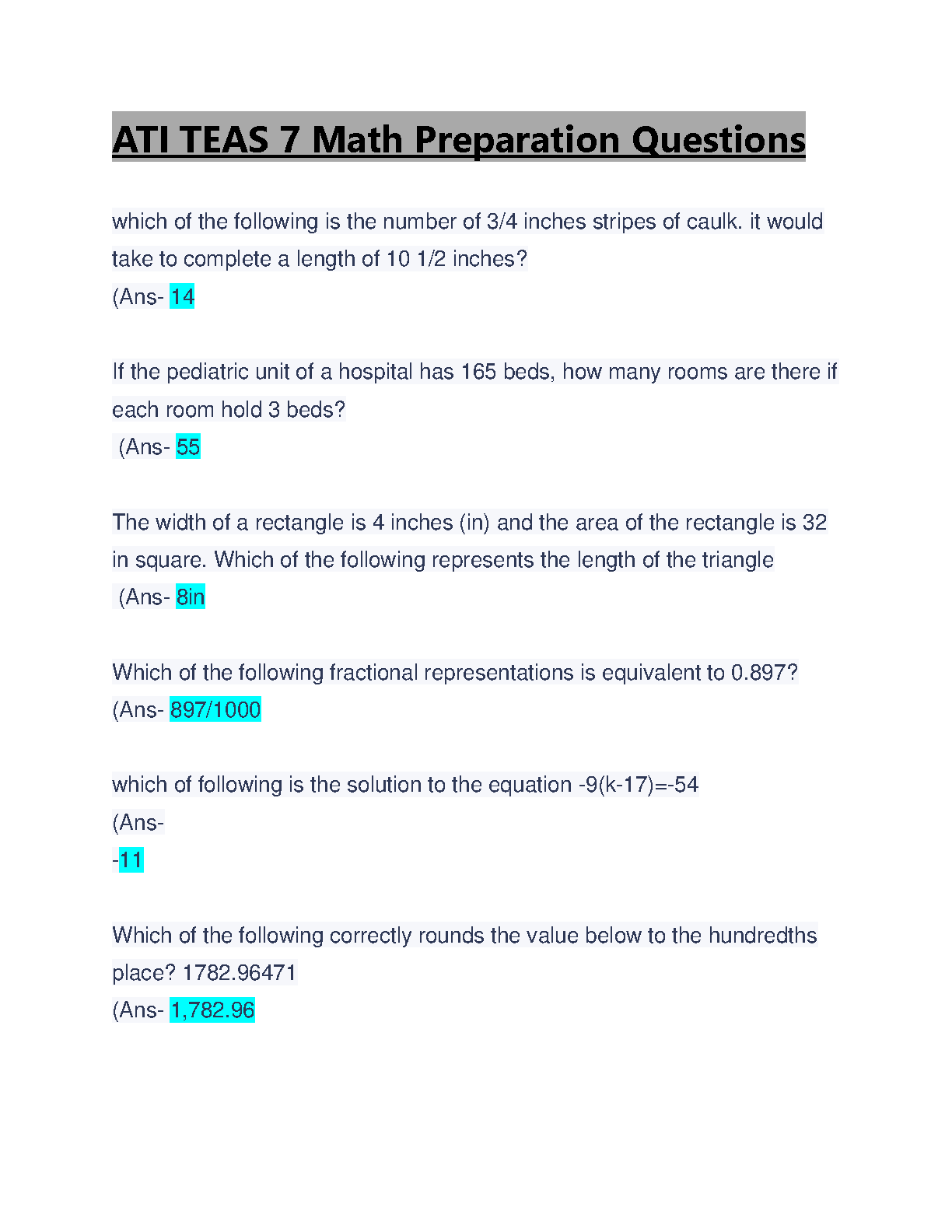 ATI TEAS 7 Math Preparation Questions: The Ultimate Guide to Passing on the First Attempt