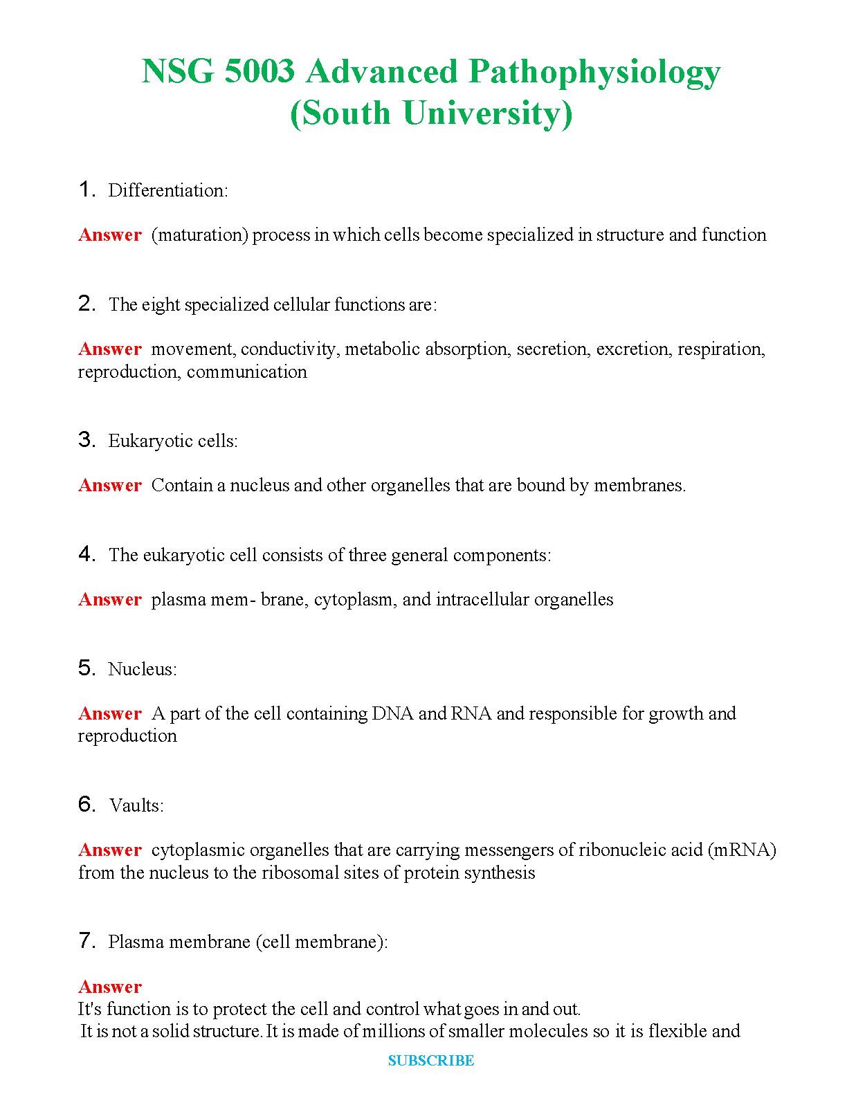 NSG 5003 Advanced Pathophysiology (South University) - 2024/2025 Edition - Ace Your Exams on the First Attempt