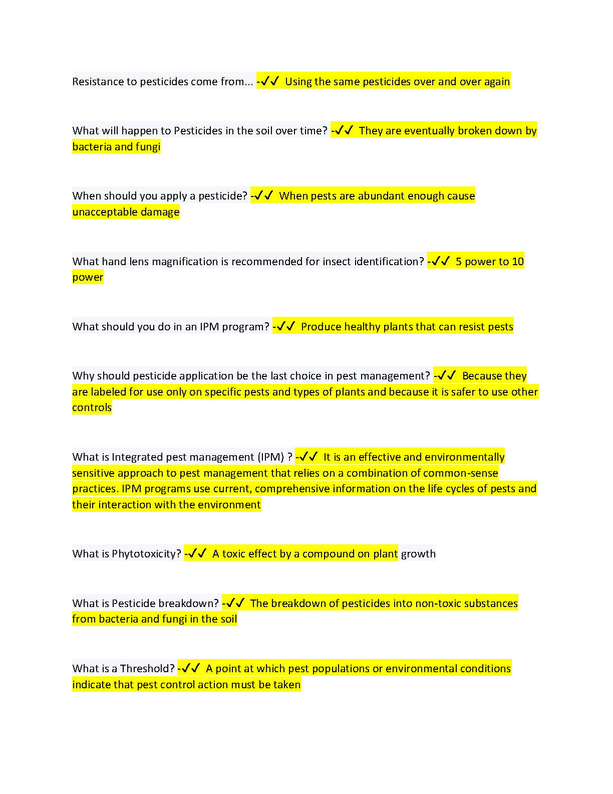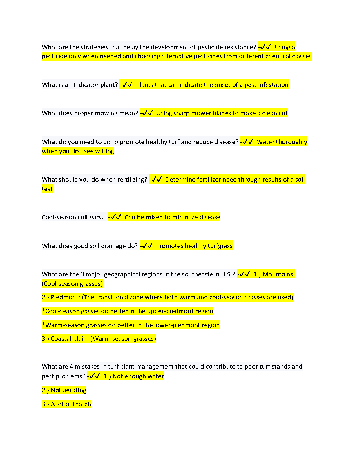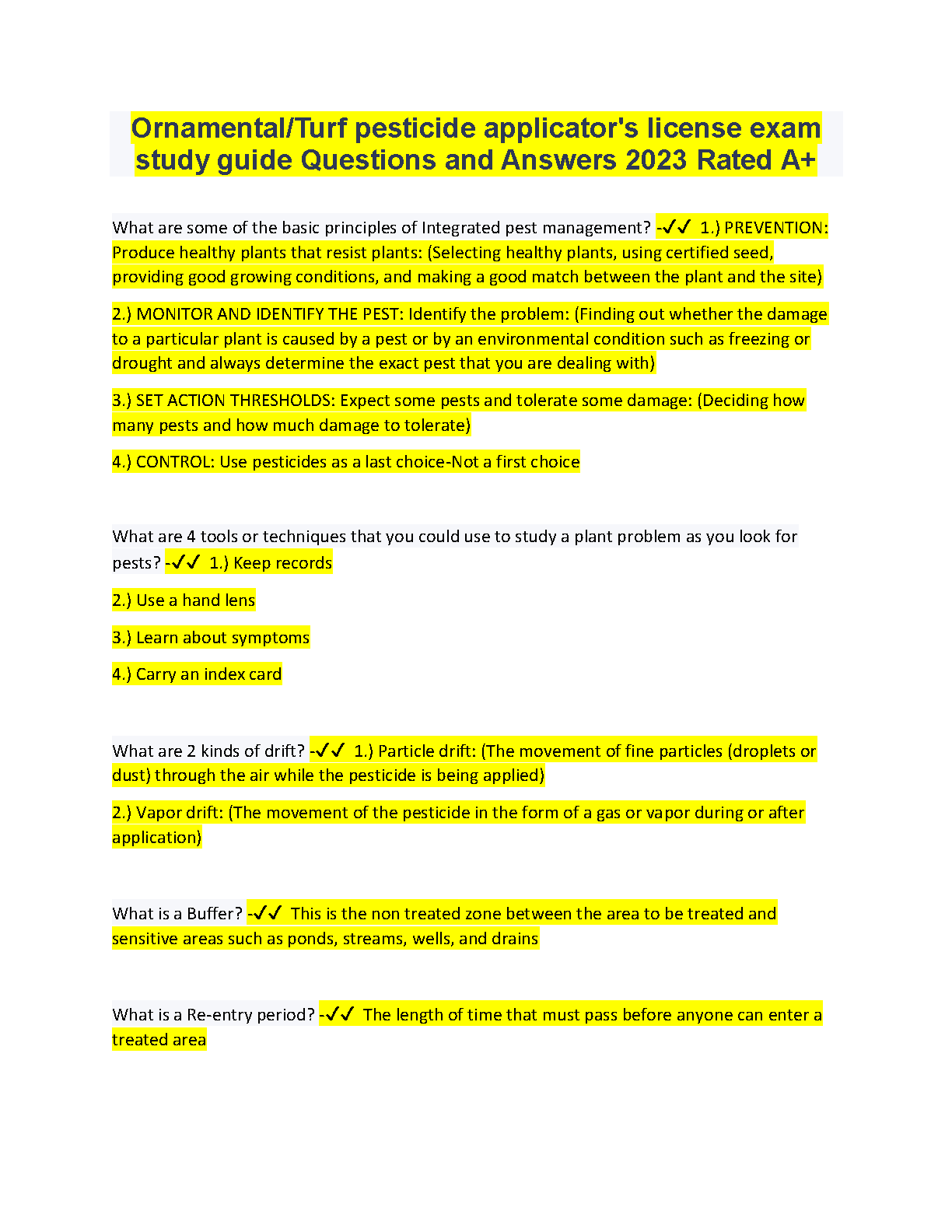Ornamental/Turf Pesticide Applicator's License Exam Study Guide Questions and Answers 2023 Rated A+