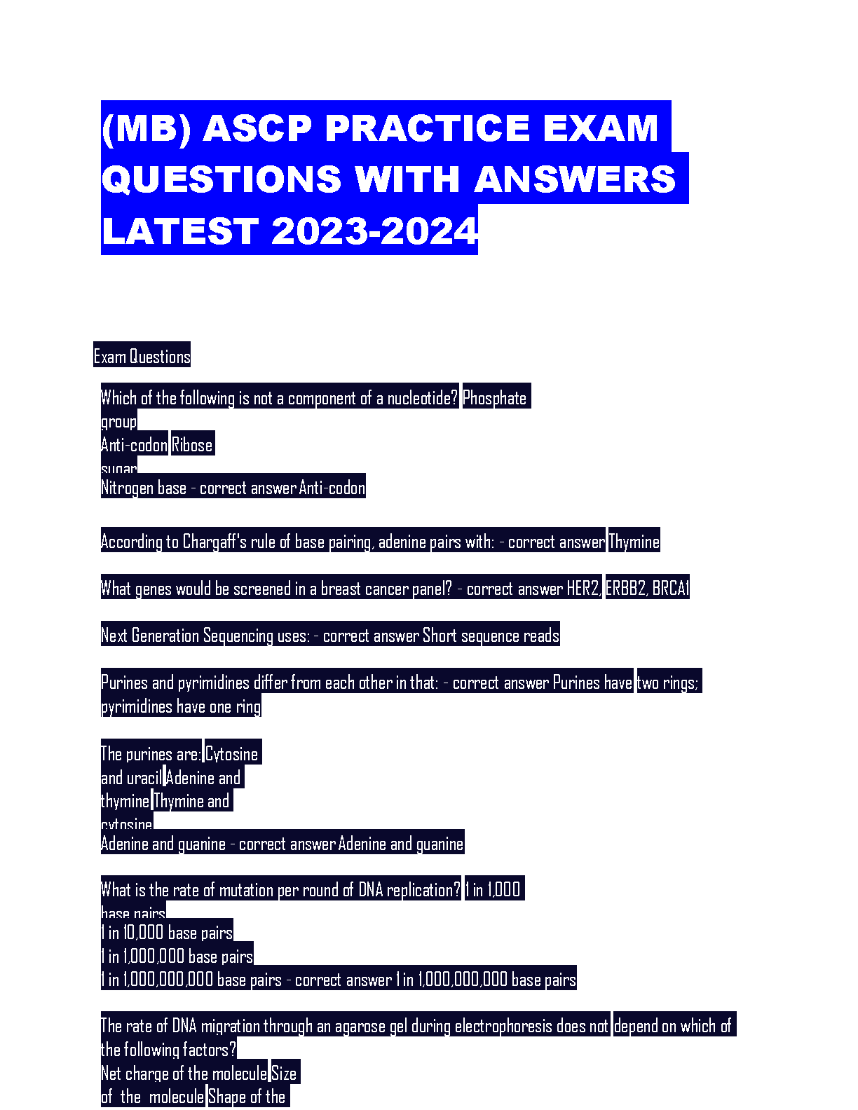ASCP Practice Exam Questions with Answers Latest 2023-2024 Edition - Pass Your Exam on the First Attempt!