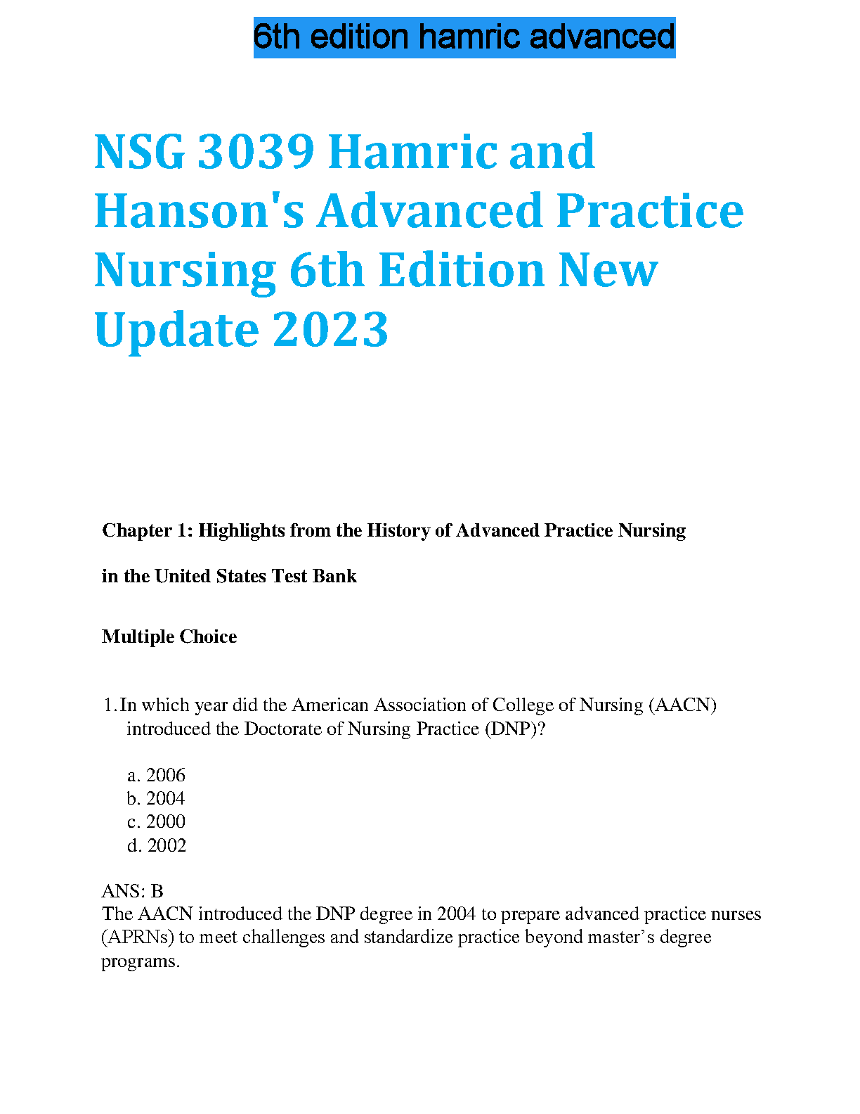 Hamric and Hanson's Advanced Practice Nursing 6th Edition Test Bank - Ace Your Exams on the First Attempt!