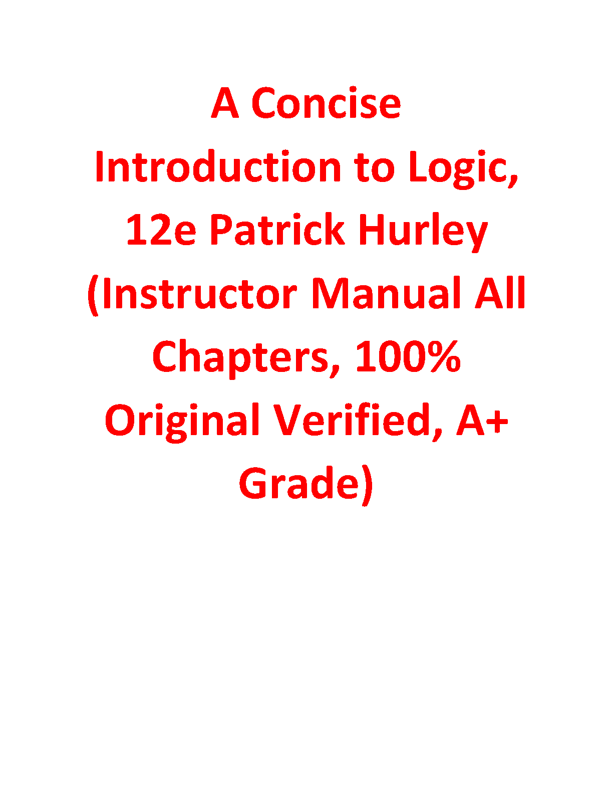 A Concise Introduction to Logic 12e Patrick Hurley, Jeffrey L. Maloney Instructor Manual - 2024/2025 Edition - Ace Your Exams on the First Try