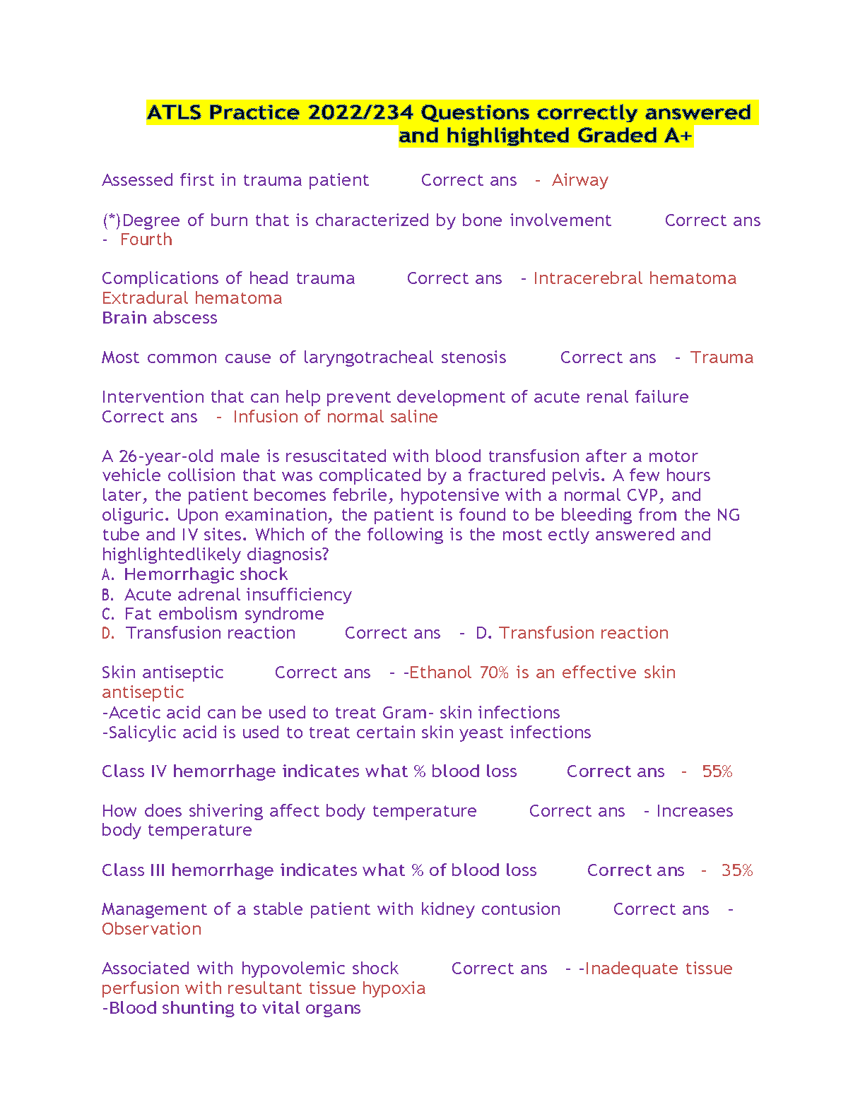 Get ready to ace your ATLS exam! This comprehensive practice test covers the latest edition of ATLS 2022/2023. These practice questions are carefully crafted to help you understand the critical concepts and scenarios that are essential for success on the ATLS exam. Get an edge with this resource, and start your ATLS journey with confidence.