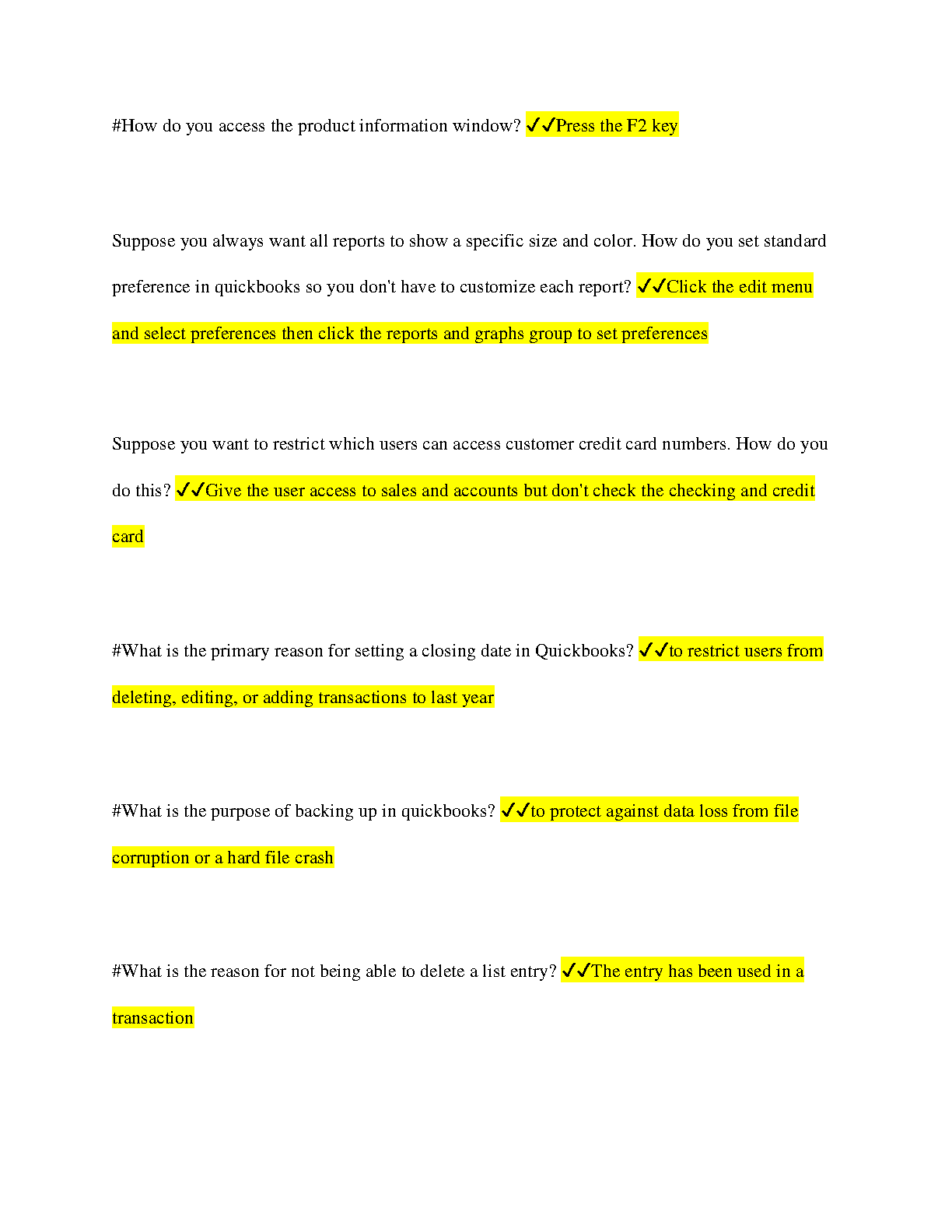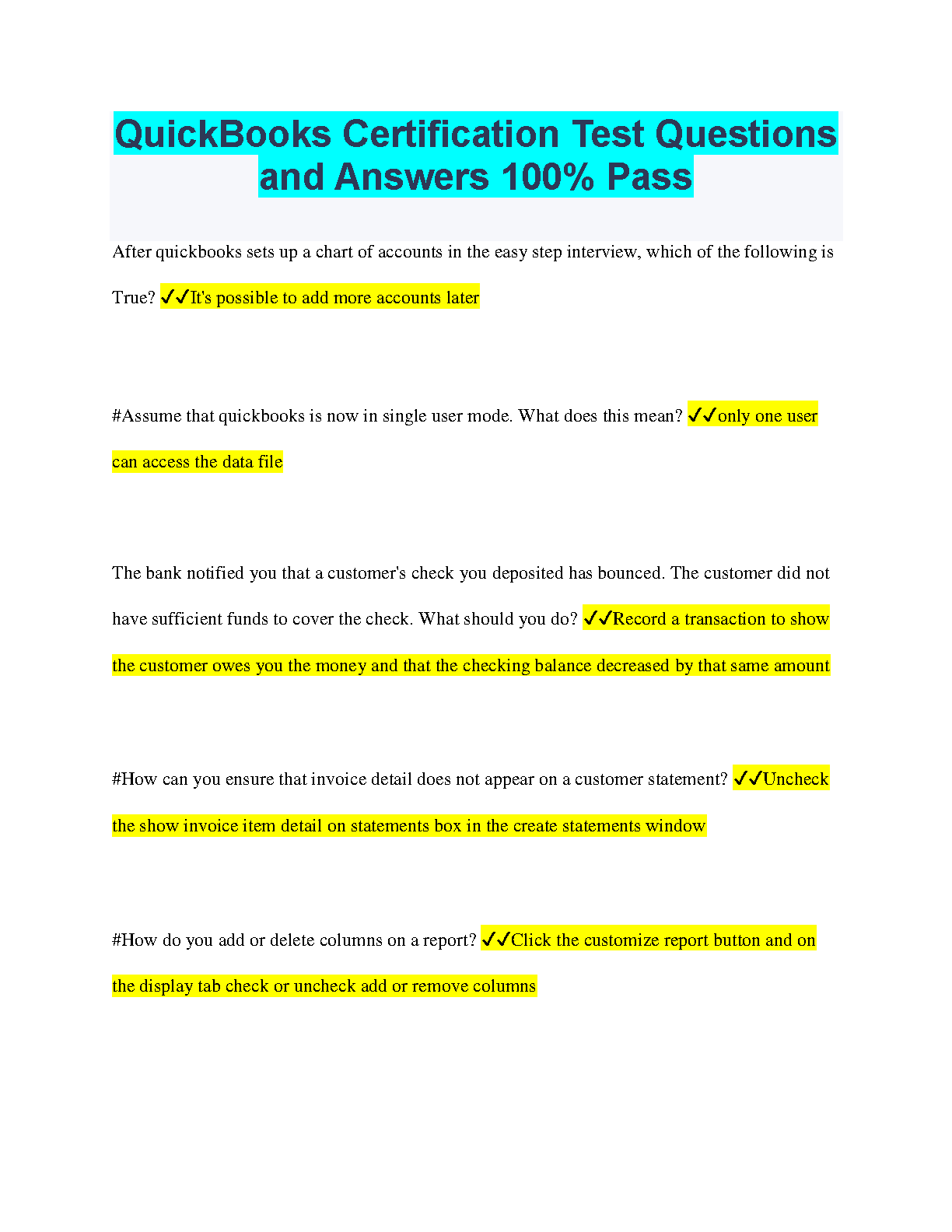 QuickBooks Certification Test Questions and Answers 100% Pass - Latest Edition for 2024/2025