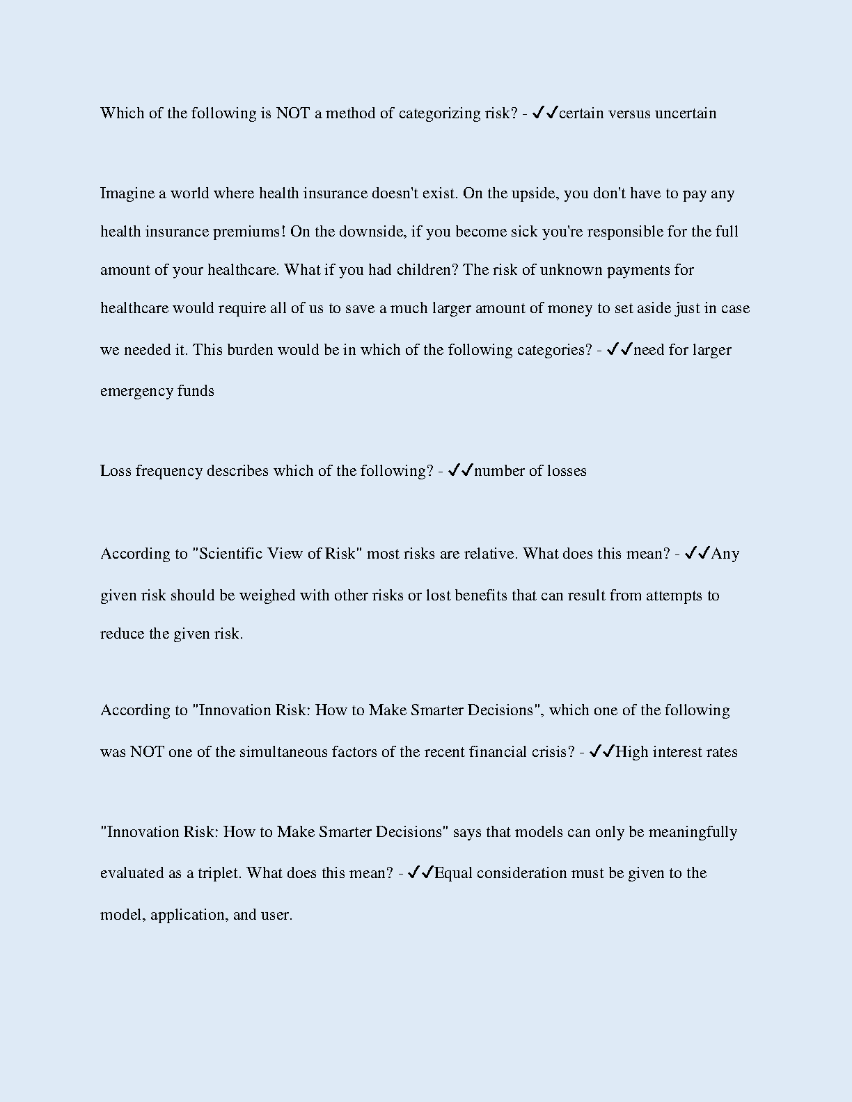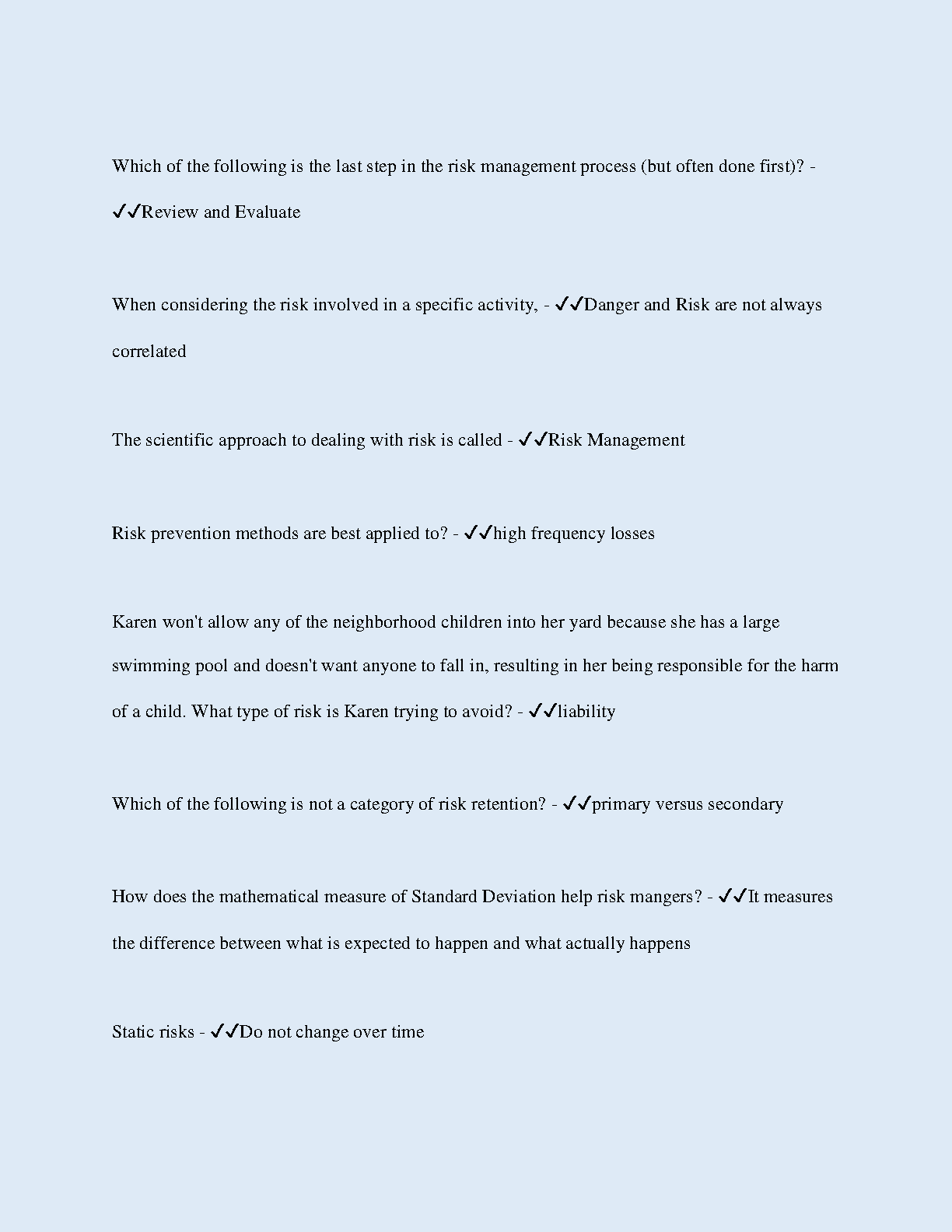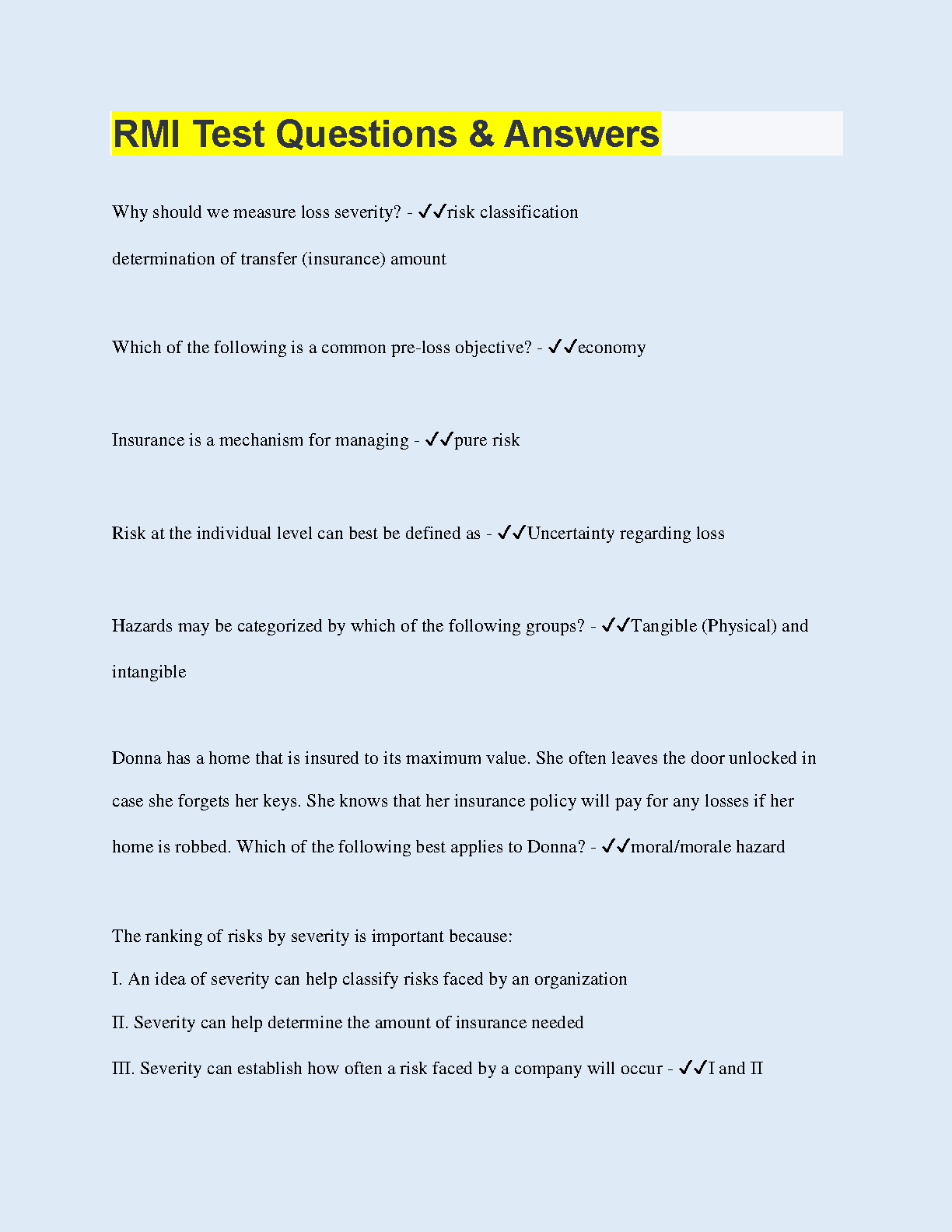RMI Test Questions & Answers - 2024/2025 Edition - Pass Exams First Attempt