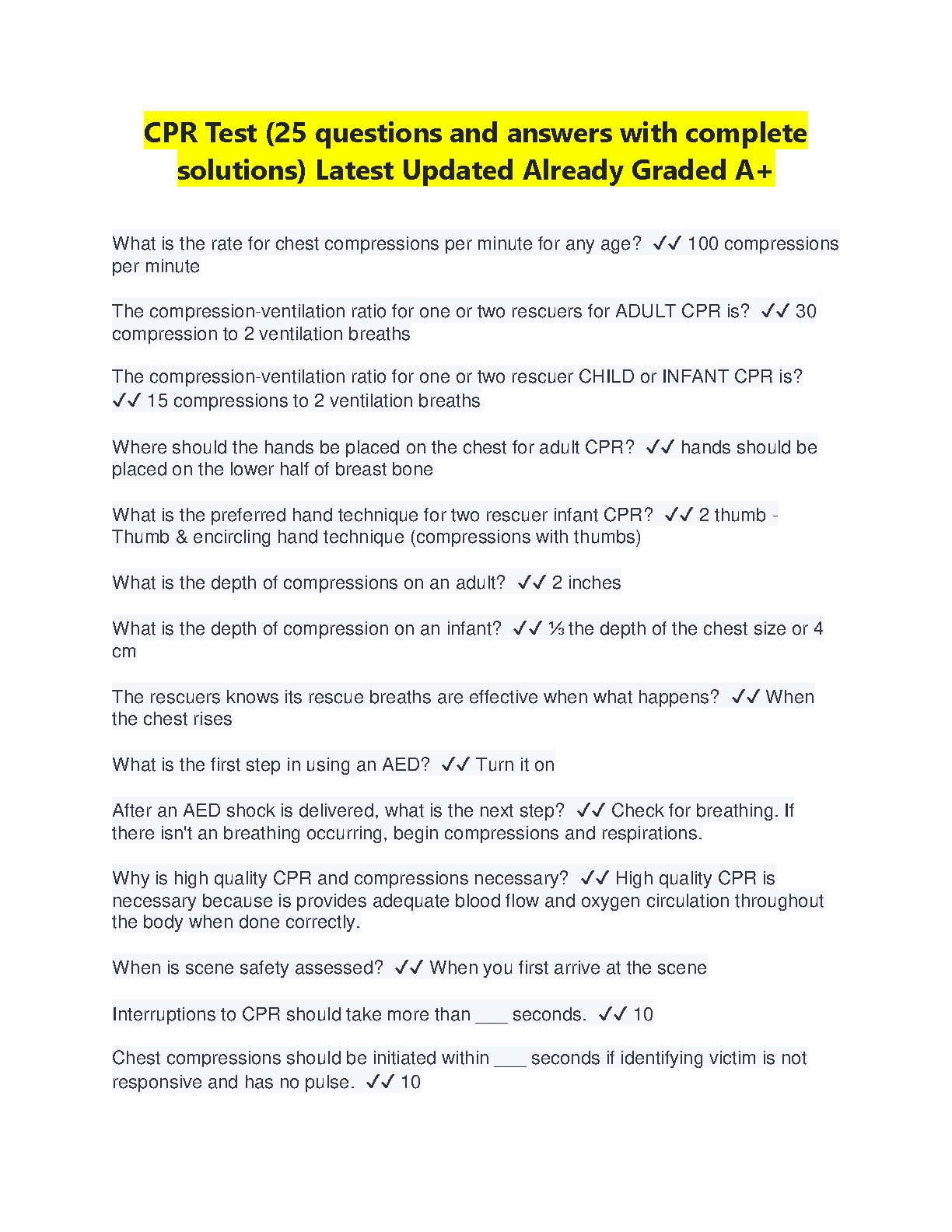 CPR Test (25 questions and answers with complete solutions) Latest Updated Already Graded A+