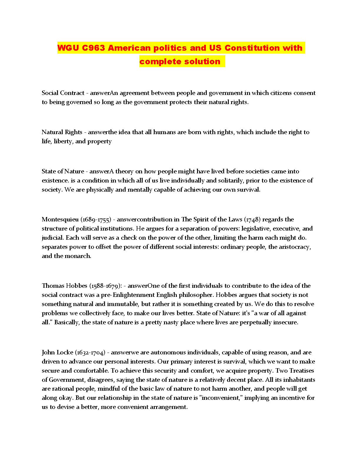 WGU C963 American Politics and US Constitution with Complete Solutions for 2024/2025 Academic Year