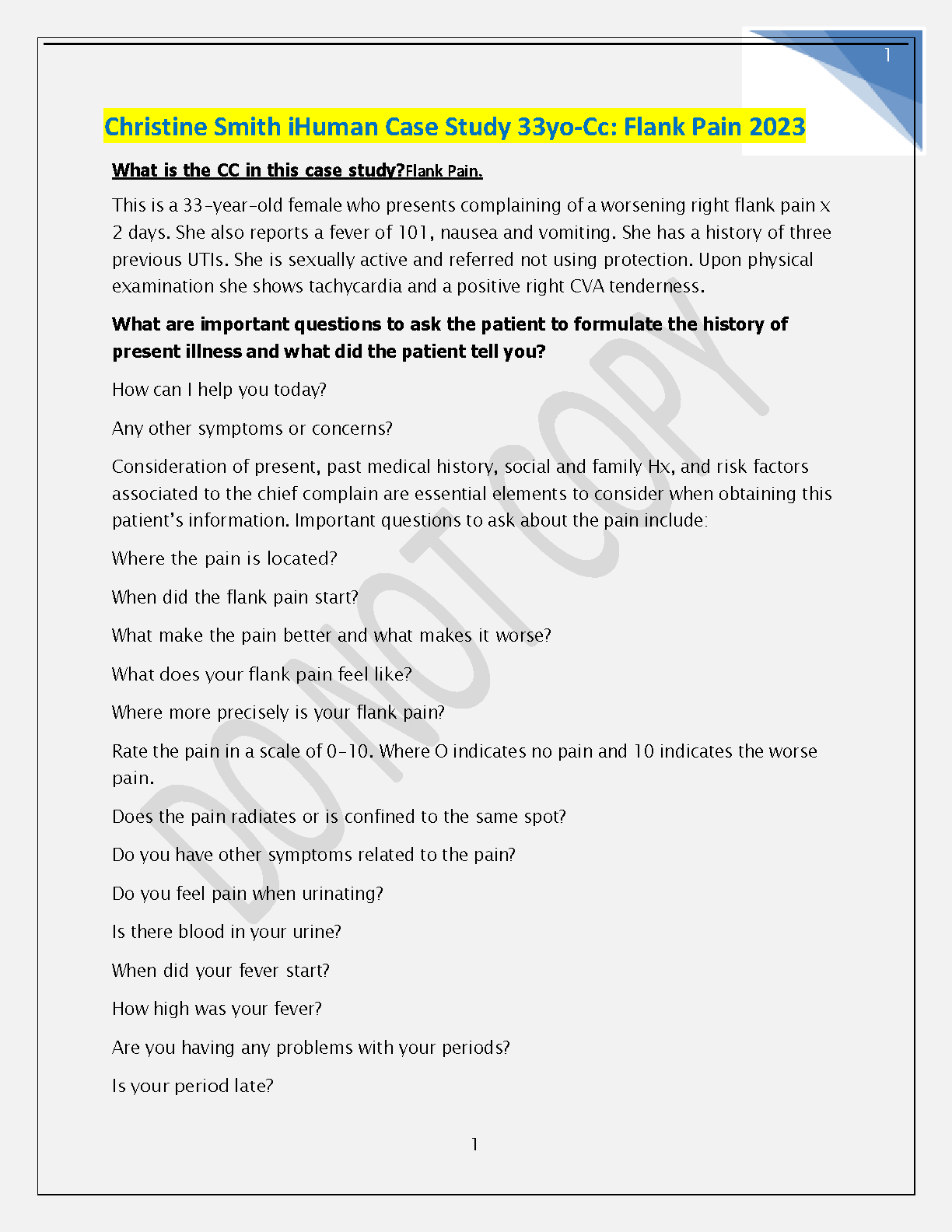 Christine Smith iHuman Case Study 33yo-Cc: Flank Pain 2023