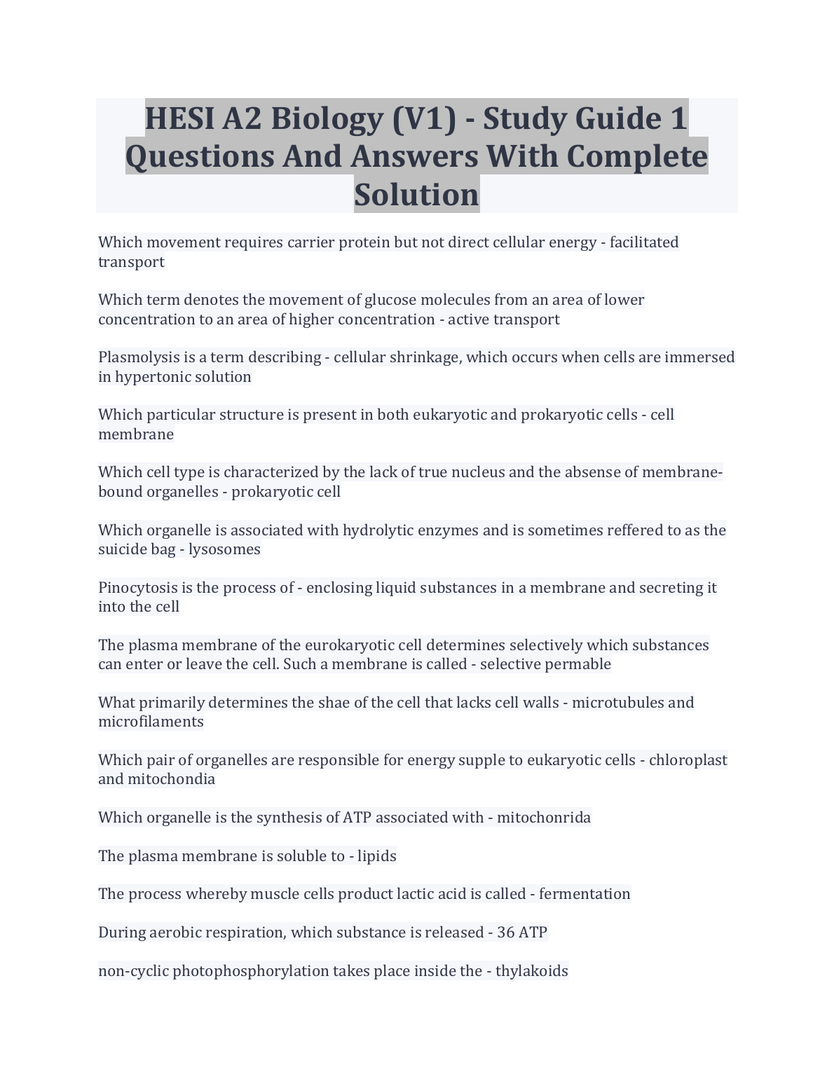 HESI A2 Biology (V1) - Study Guide 1 Questions And Answers With Complete Solution RATED A+. DOWNLOAD on www.hackedexams.com INSTANTLY.
