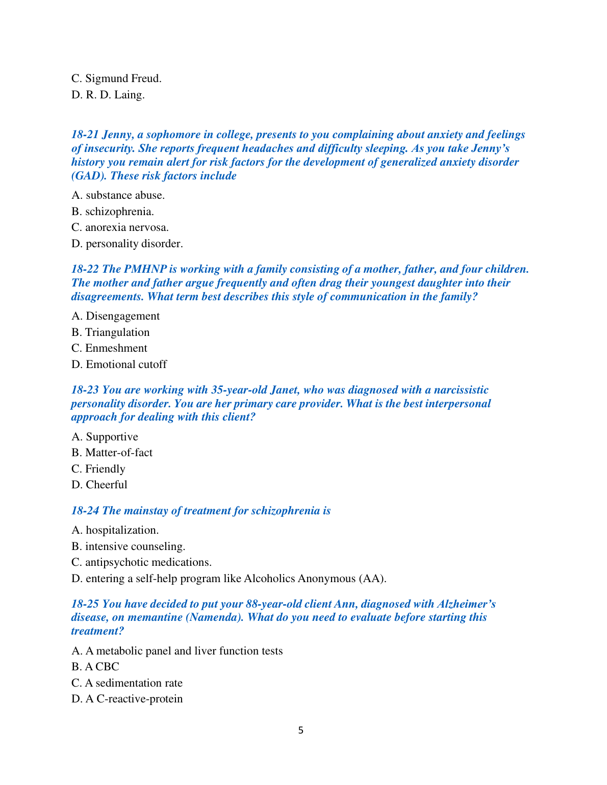 FNP Review Dunphy 8th Edition - Chapter 18 Psychosocial Problems Exam Questions and Answers