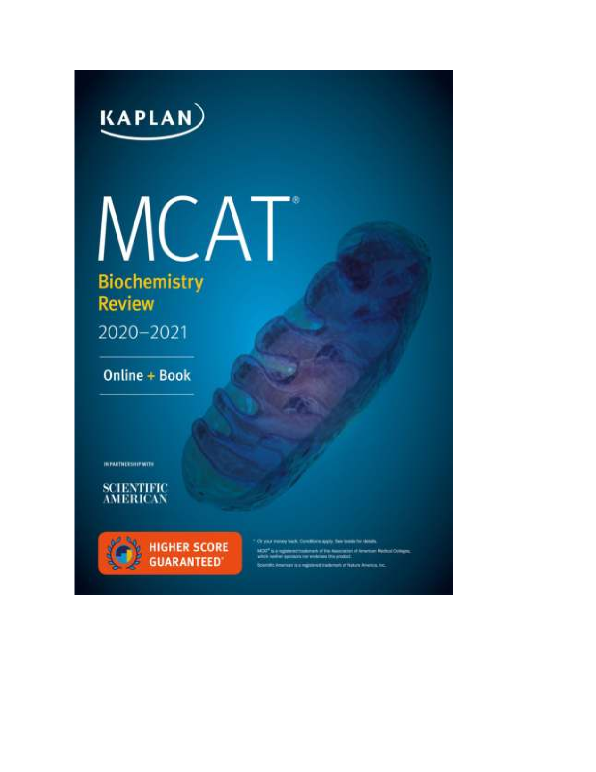 Ace the Biochemistry section of the MCAT with this comprehensive review guide from Kaplan, written by top experts. The 2020-2021 edition includes updated content, practice questions, and online resources to help you master biochemistry.