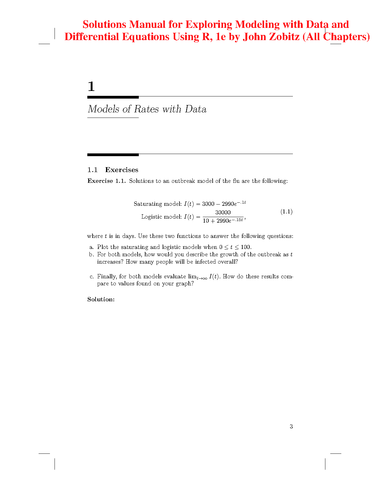 Solutions Manual for Exploring Modeling with Data and Differential Equations Using R, 1e by John Zobitz (All Chapters)