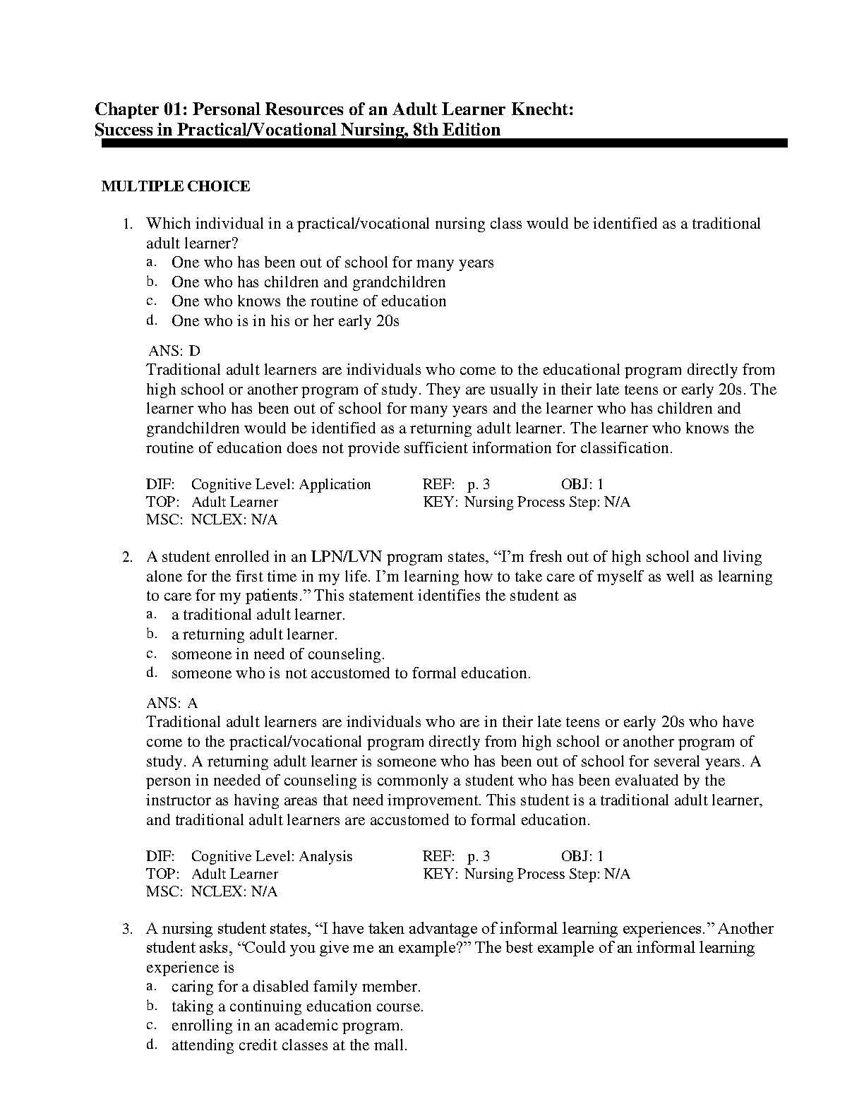 Test Bank for Success in Practical/Vocational Nursing, 8th Edition by Patricia Knecht